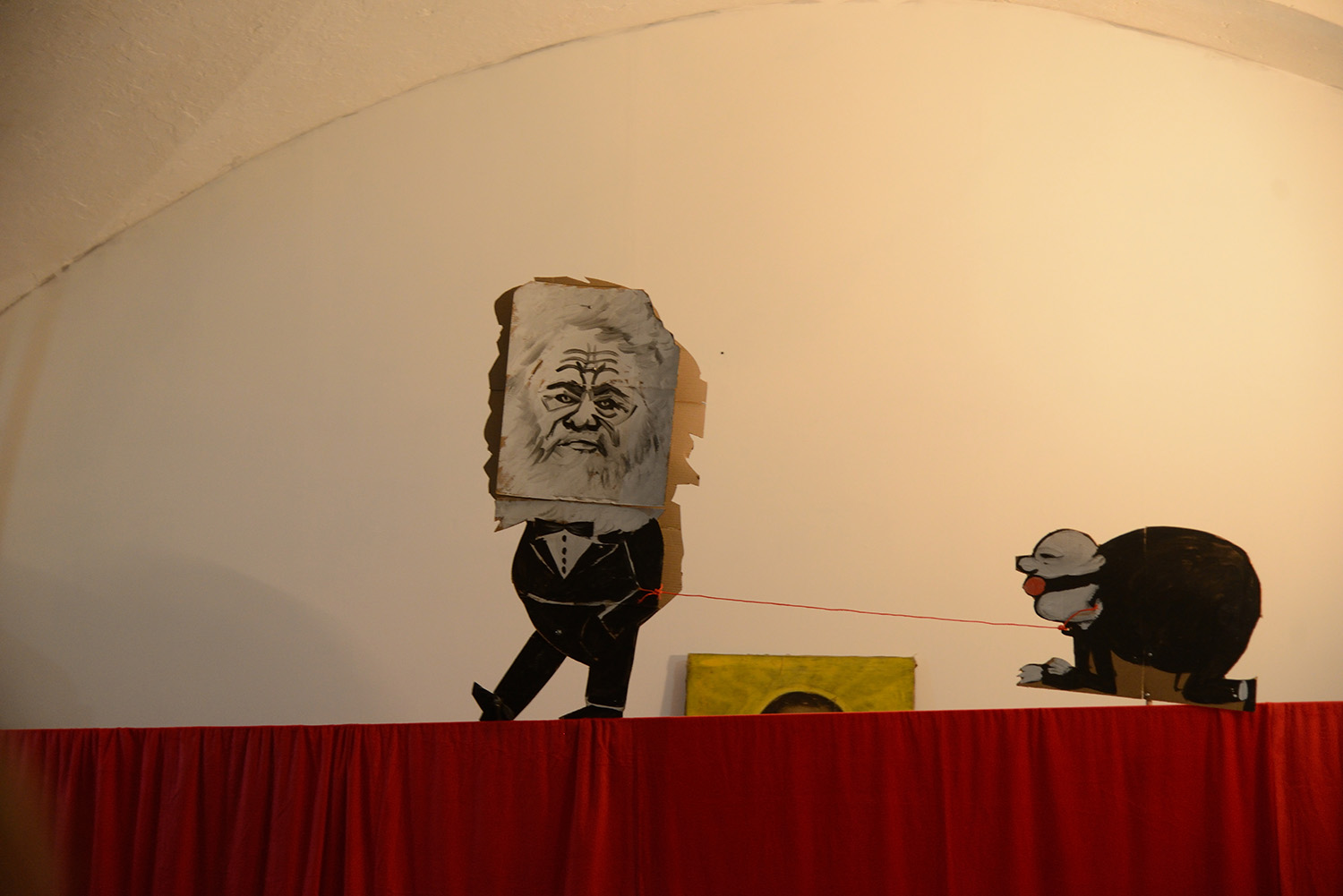 Сценарий спектакля «Пояс Афродиты» был написан на основе историй проституток. Мы просили их делать эскизы кукол. Потом Вилкин сделал объекты — скульптуры и куклы. Дальше мы подготовили спектакль, в процессе работы организовался коллектив».