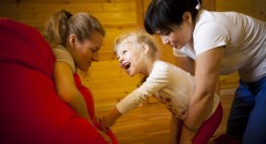 Мы не знаем, как мы встаем со стула, но на самом деле, чтобы встать со стула, надо поставить ноги ровно, слегка перенести центр тяжести так, чтобы он находился над стопами, и поднять себя мышцами бедер. Много занятий может посвятить физический терапевт тому, чтобы научить сидящего ребенка переносить центр тяжести вперед. Следя за тем, чтобы ребенок опирался об пол обеими стопами, физический терапевт поставит перед ребенком стол и положит на стол игрушку. Чтобы ребенок тянулся к ней, переносил центр тяжести вперед целенаправленно и осознанно. И однажды ребенок встанет.