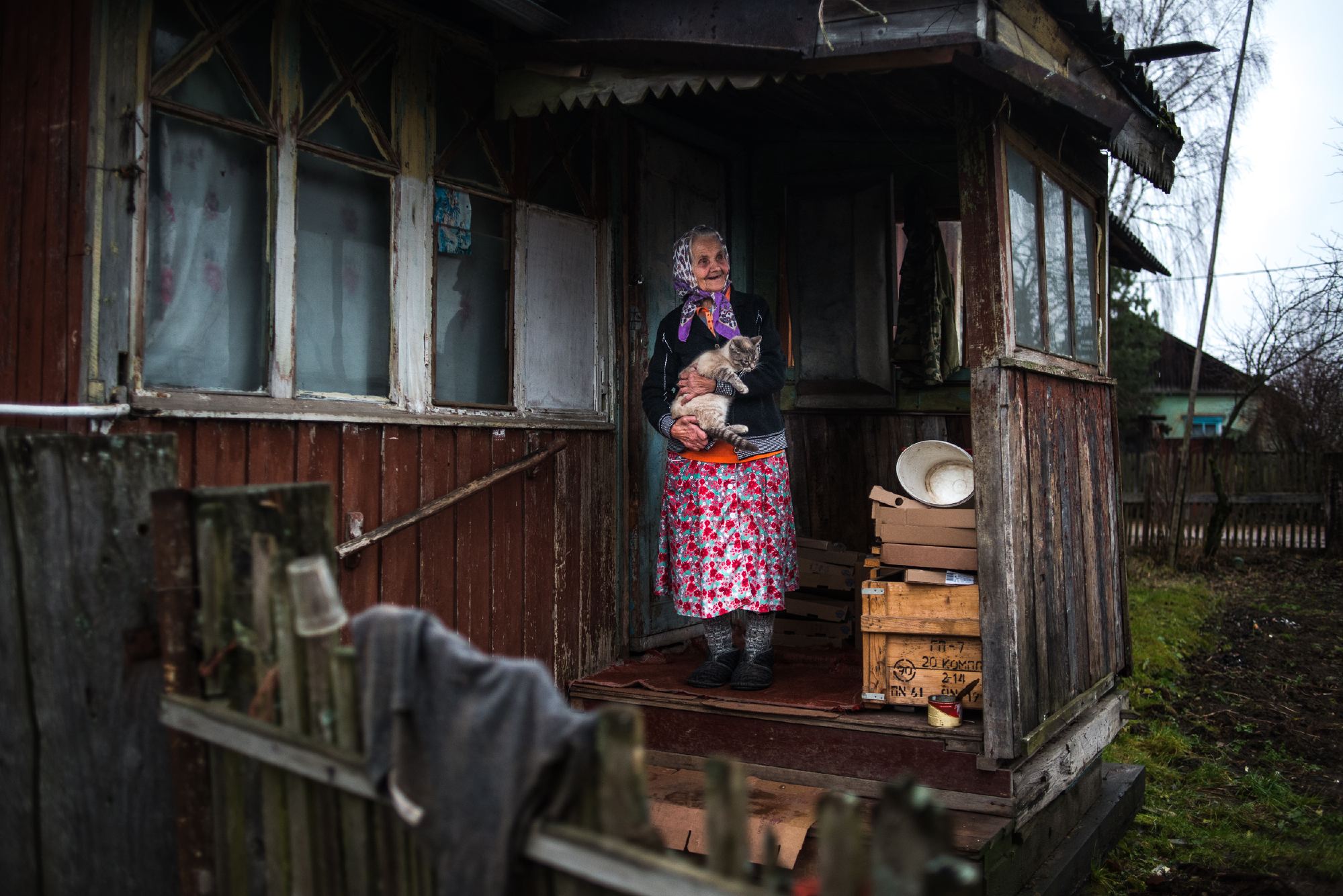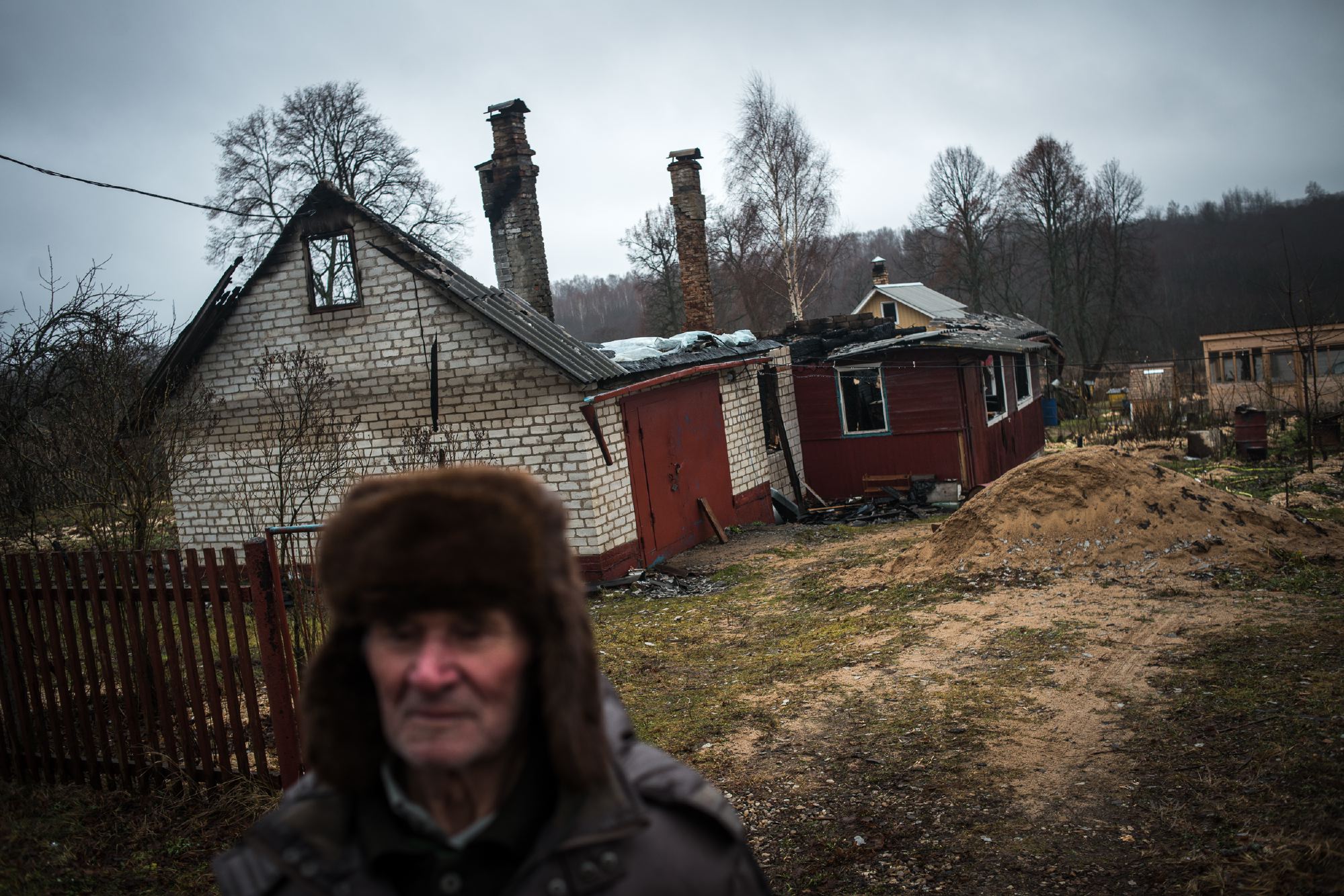 Дом Кирилла Романовича виден уже с дороги — обвалившаяся крыша и черные стены. Несколько месяцев назад тут случился пожар. Замкнуло старую проводку. Сгорело почти все — удалось вынести лишь документы и зимнюю одежду. После пожара Кирилл Романович вместе с женой переехал в соседний дом к сыну, но жить там не смог, у жены от шока «с головой плохо стало». Ночью она прибежала к соседям с криками: «У меня в доме какой-то дед с трассы!» Так Нина Палладьевна перестала узнавать своего мужа. Кирилл Романович перебрался жить в баню, которую сам недавно построил. Сейчас ему 87 лет.