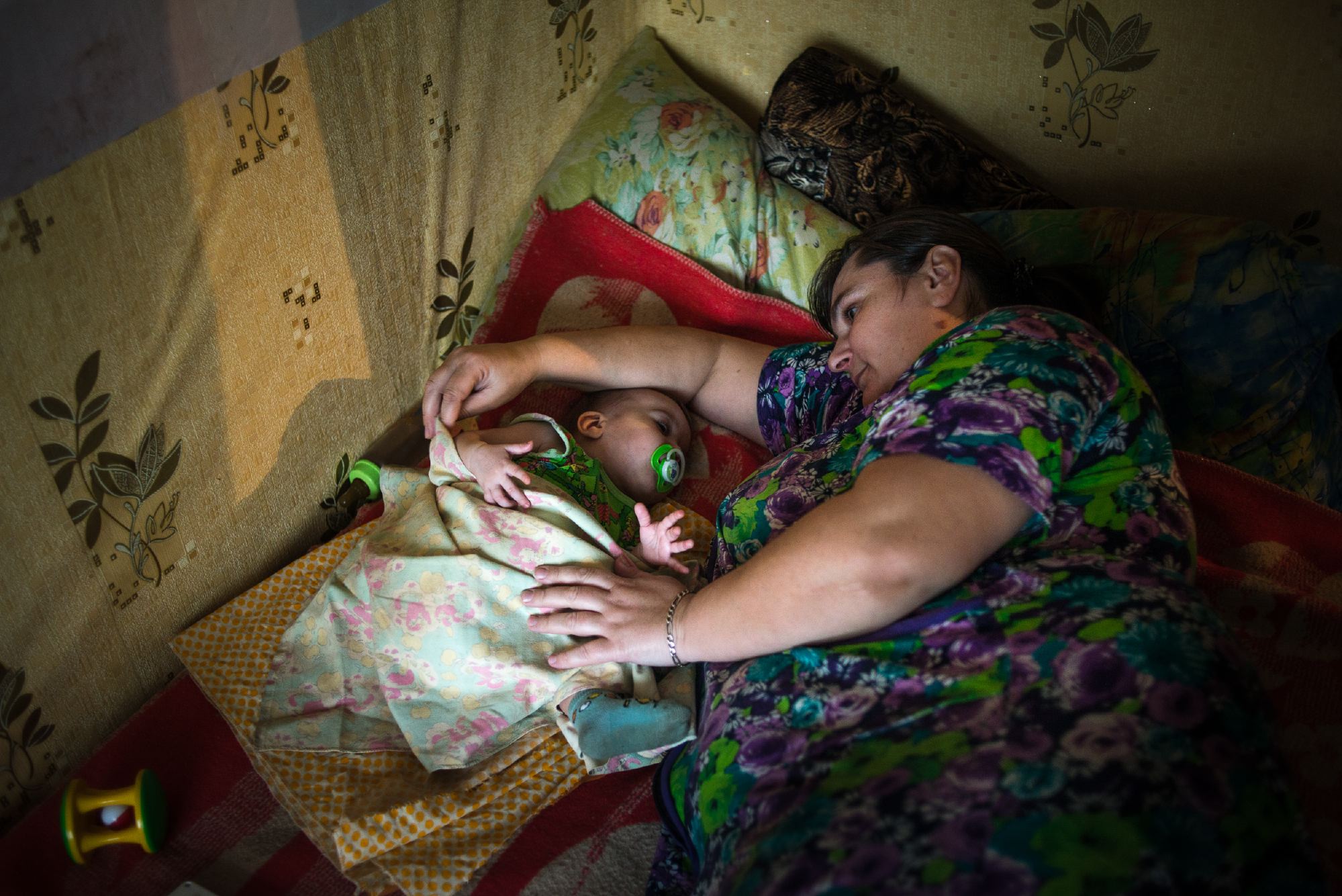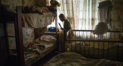 Около входной двери тихо вздыхает Светлана, социальный работник и волонтер фонда продовольствия, знающая эту семью уже давно: «Понимаете, у них у всех затяжное депрессивное состояние. Видите, вы тут ходите, фотографируете, а они даже не понимают, что у них грязно, что можно было бы прибраться, вымыть всю кухню. Они уже ничего не замечают».