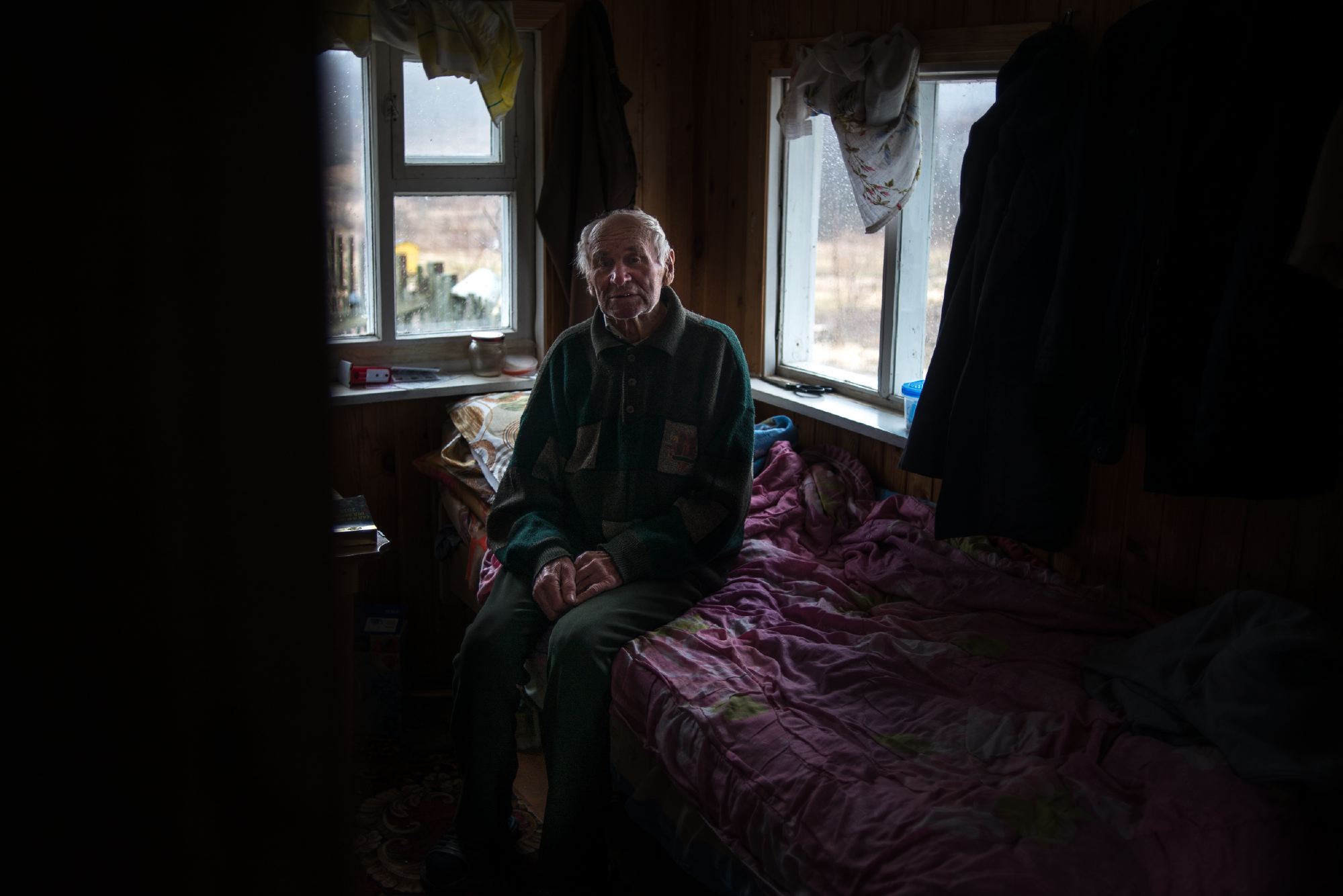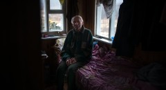 Сын у меня в Москве, временно не работает. За сгоревший дом нам дали компенсацию — 17 тысяч, так он накупил продуктов на эти деньги, привез нам. Правда, холодильника пока нет, поэтому храню то, что не портится. Картошка у меня своя. А мясо я и не ем. Мы с сыном обращались куда только можно после пожара. Заявления были простые: «Помогите нам!» — только и всего, как на тонущем корабле. Так что вот она жизнь, а концовка плохая под конец года. Сижу тут один: ни телевизора, ни газет, а в окне этот дом старый, сгоревший. Как посмотришь, сразу тоска нагоняет, корвалольчик приходится пить. Хоть бы уборку сделать, разгрести эти завалы. Люди, слава богу, добрые, – принесли мне телефон, одеяла, радиоприемник — все вот, что вы видите тут. Так что я так тихонько к уху прикладываю динамик и новости слушаю. Раньше я смотрел, как Украина переживала Донбасс, люди там в подвалах жили, холод, голод. Так и у нас тут — люди меня спасли.
