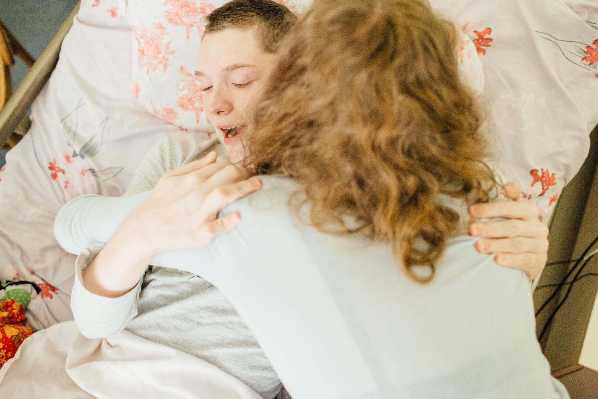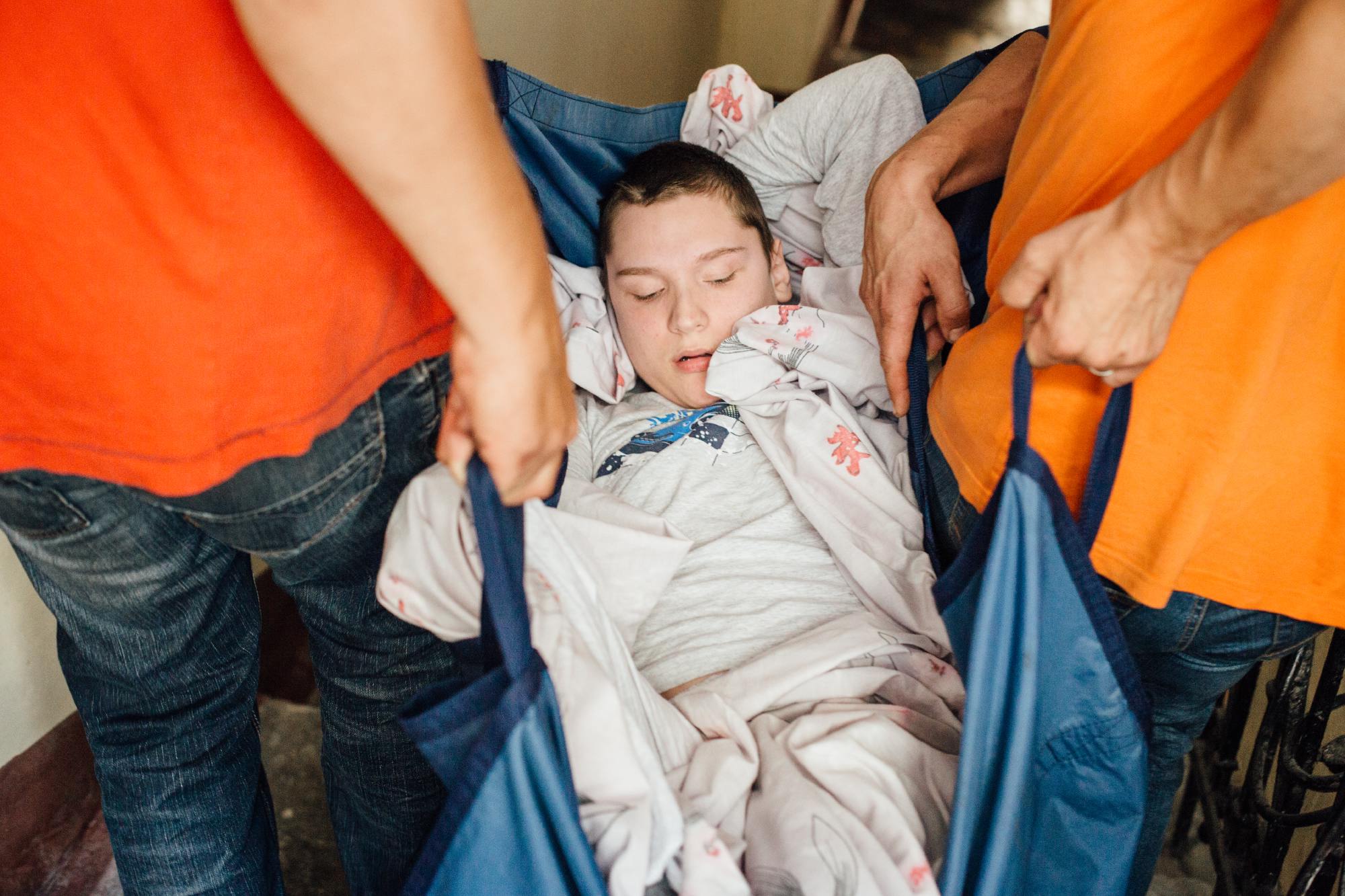 Владу — 14, он лежачий, у него поражение головного мозга и множественные физические нарушения.