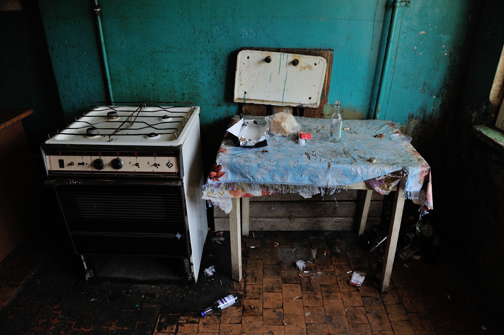 Общая газовая плита рядом со столом, где часто бывают пьяные «посиделки» соседей