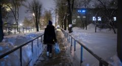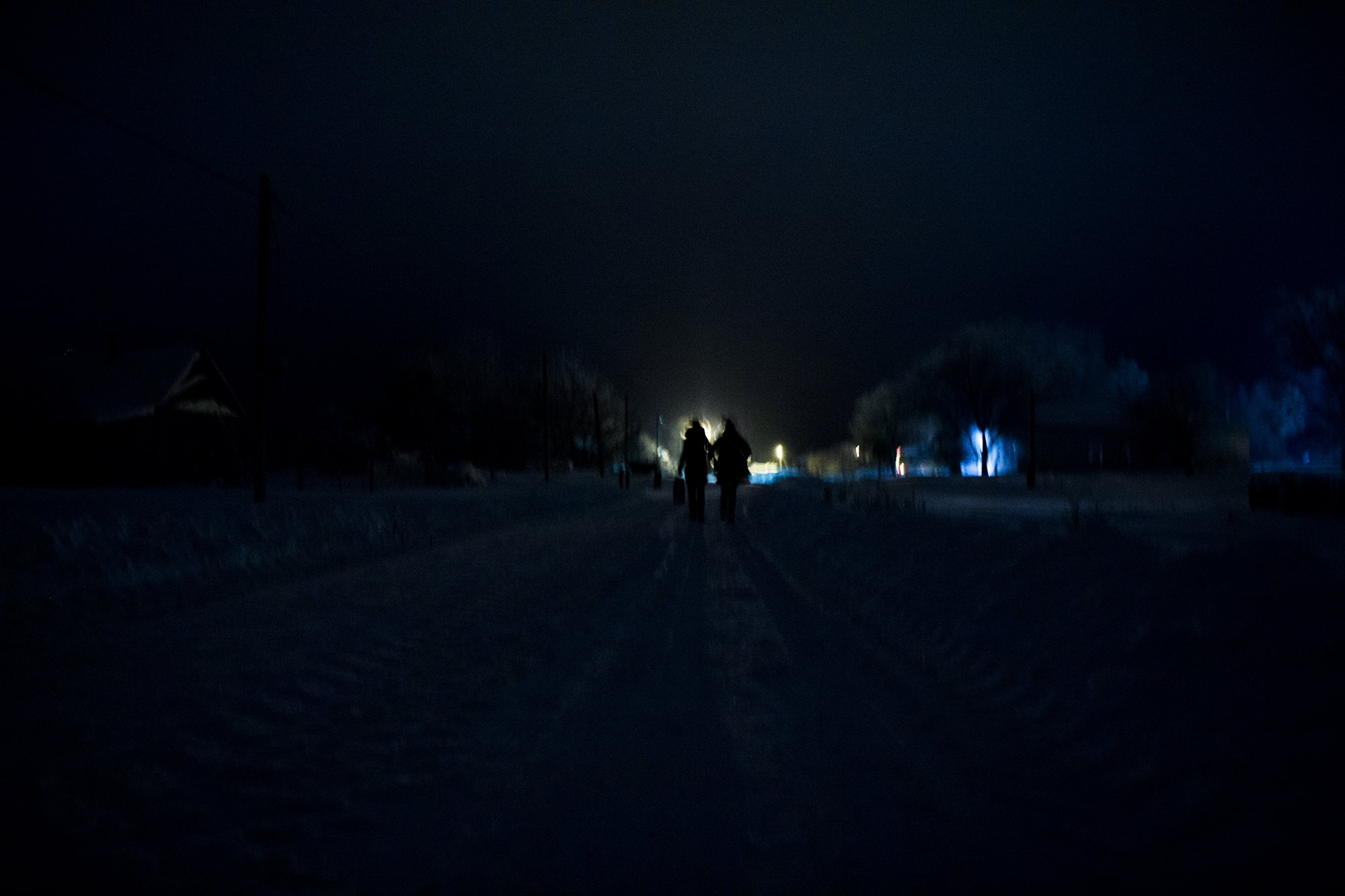 Обычно на остановку Ксюшу провожает мама: даже по привычной дороге идти в кромешной тьме девочке сложно. Сегодня вместо мамы я — крепко держу Ксюшу за руку, пока идем до остановки по заснеженной трассе.