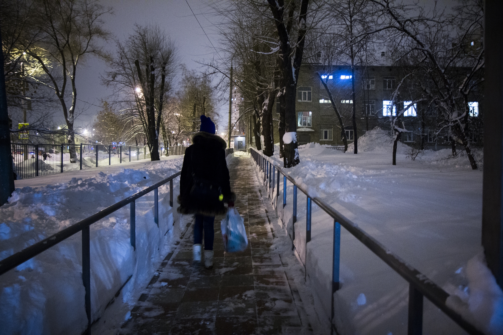 В Самаре Ксюша выходит на станции Пятилетка. Время седьмой час, снова темно, а до интерната еще довольно далеко. Выйдя из электрички, она почти бежит к турникету. Пока двери вагона открыты, немного освещается снег под ногами. И надо обязательно успеть добежать, пока не наступила страшная тьма.