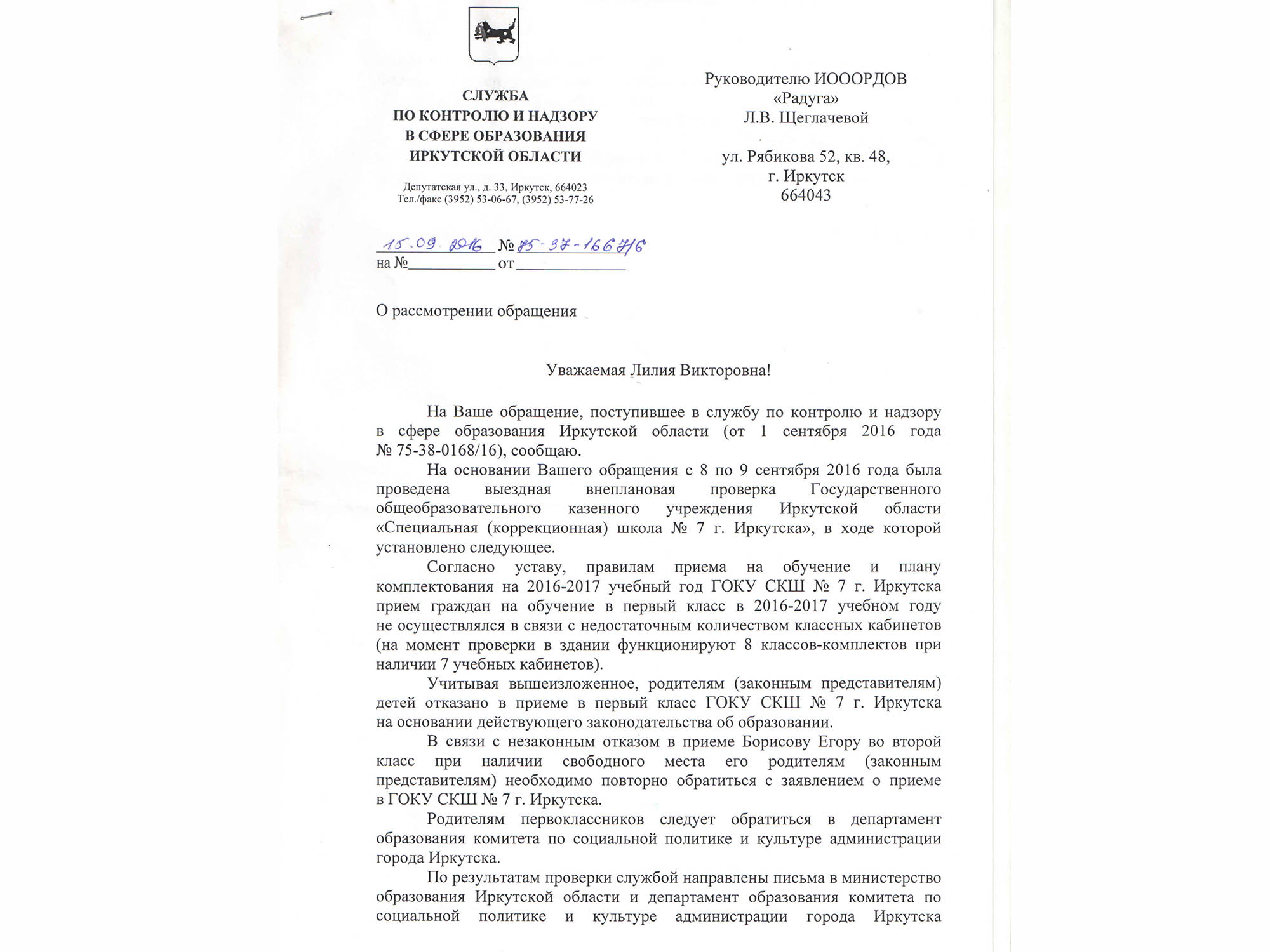Мы перебираем кипу бумаг со штампами разных госструктур: прокуратура, Роспотребнадзор, губернатор, министерства, Госдума, департамент такой, департамент сякой. Кажется, устройством в школу пяти иркутских первоклашек с синдромом Дауна в прошлом году занимался весь свет.