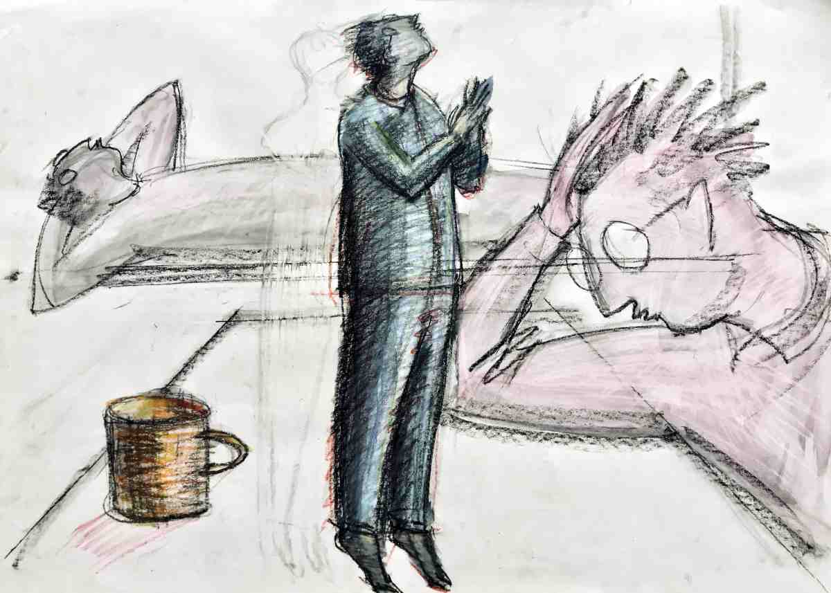 Сны в колонии снились яркие — захотелось их фиксировать. Они были отчасти легальным побегом, но, с другой стороны, в них все равно проигрывалась реальность. Например, приснилось, как в камере я стал очень маленьким, таким образом преодолев замкнутость пространства. Но в конце меня поймали и посадили в сигаретную пачку. Все повторилось.