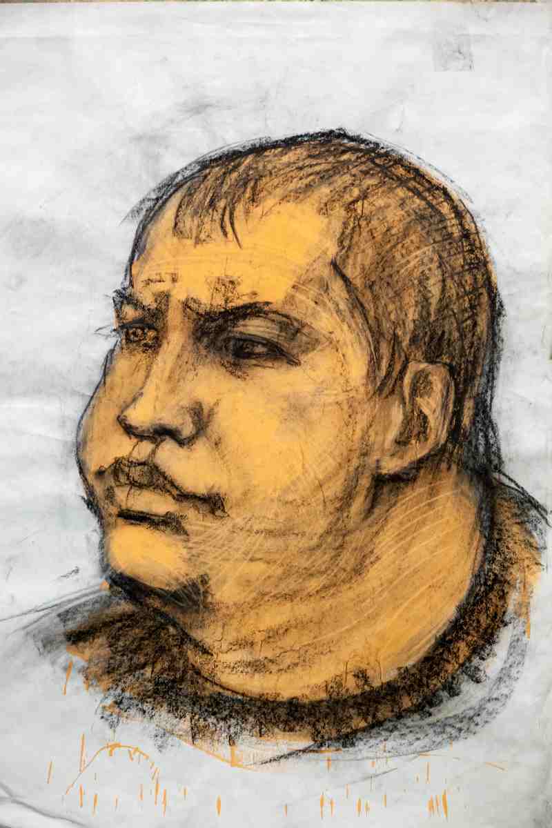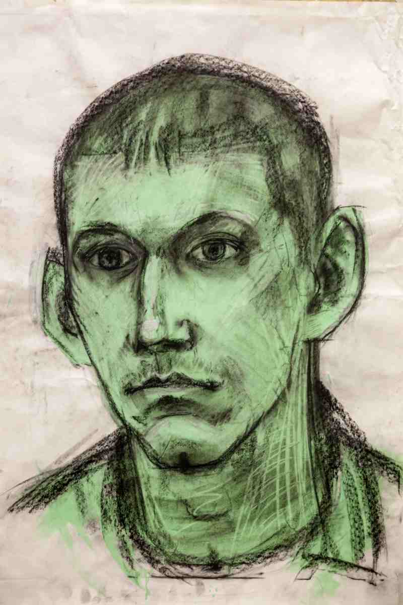 Чуть позже Марина, моя жена, смогла передать мне ватманы и уголь, а в СИЗО на ремонтных работах я раздобыл водоэмульсионные краски оранжевого и зеленого цветов. И в комнате воспитательной работы нашел доску для маркеров. Она не использовалась, я приклеивал к ней листы и делал большие портреты заключенных. На один портрет уходило два сеанса по 15-20 минут.