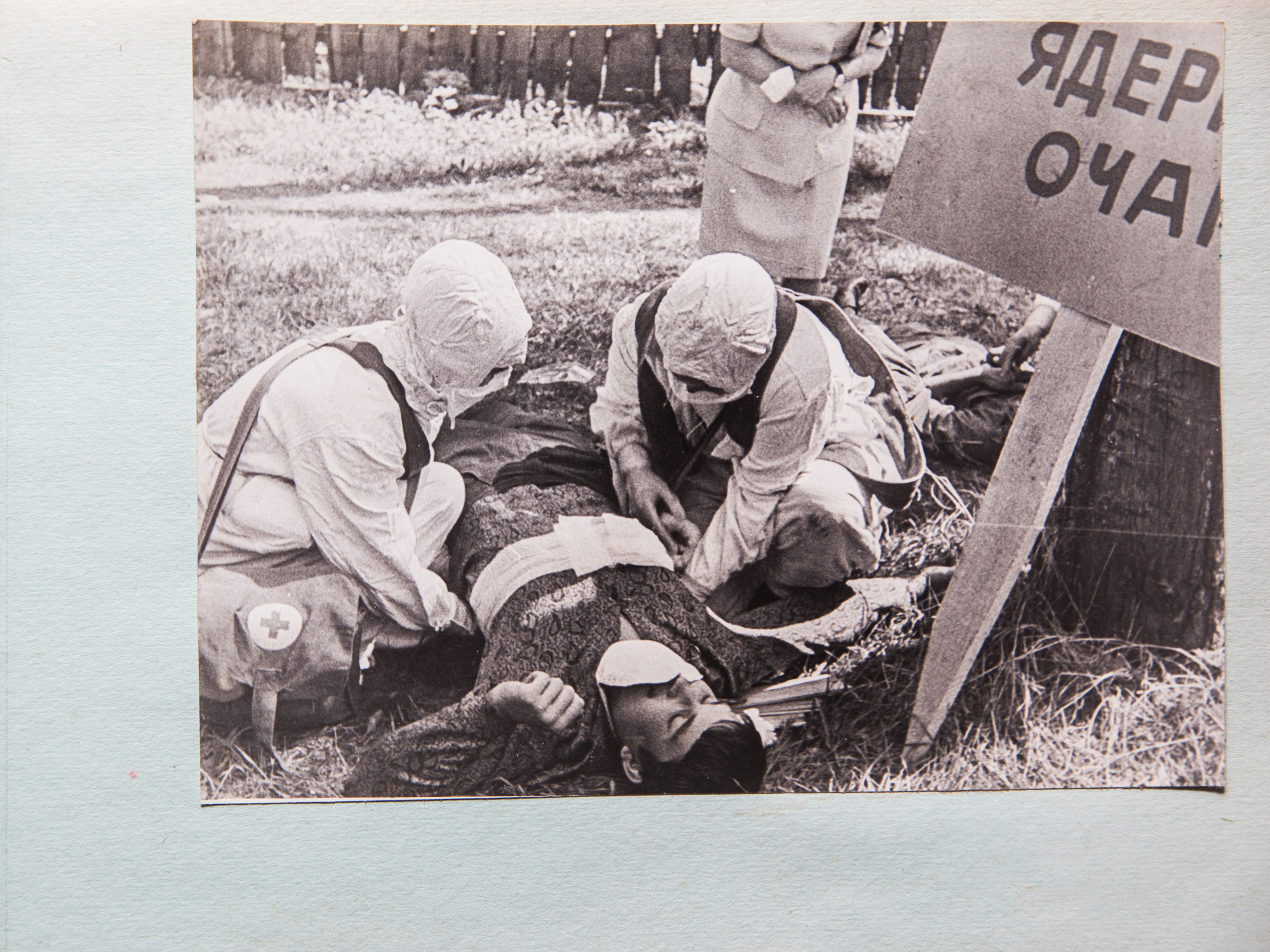 Людмила Борисовна, в прошлом сандружинница Уралхиммашзавода, рассказывает о крупных учениях, проходивших в убежище рядом со зданием одной из свердловских больниц: «Вход внутрь [убежища] был с подвала и с улицы. Приезжали специализированные службы, дезактивацию (удаление радиоактивных веществ. — Прим. ТД) делали — все по-настоящему. Внутри — мощное хирургическое отделение. И не только хирургическое, еще и палаты, зал большой. В операционной лежит статист, ему как будто операцию делают: краской намажут, а мы помогаем везде — где перевязки, где что. Целый день там развлекались!»