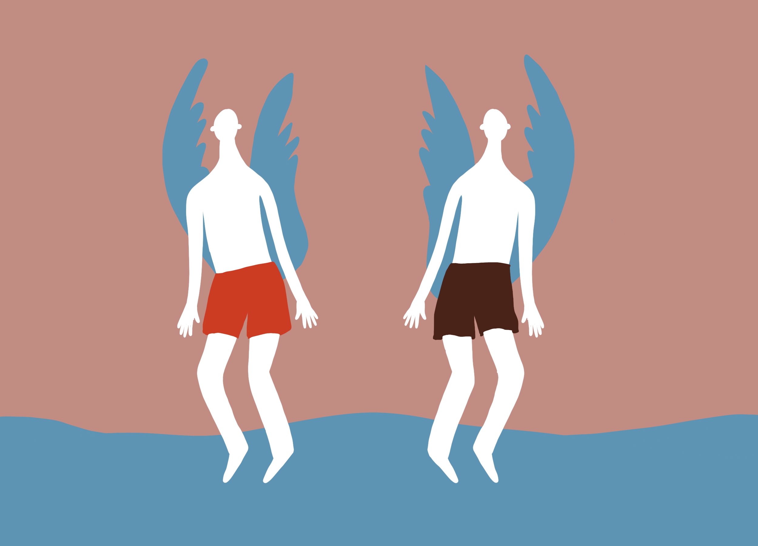 Вдруг у мужа изо рта вырывается какой-то звук. Я не могу расслышать, но уже вхожу в воду, чтобы плыть ему навстречу. «Выдыхаюсь», — наконец разбираю я. И в голове: «Это он серьезно? Нет. Наверное, просто так». Но проходят секунды, и он больше не гребет вперед.
