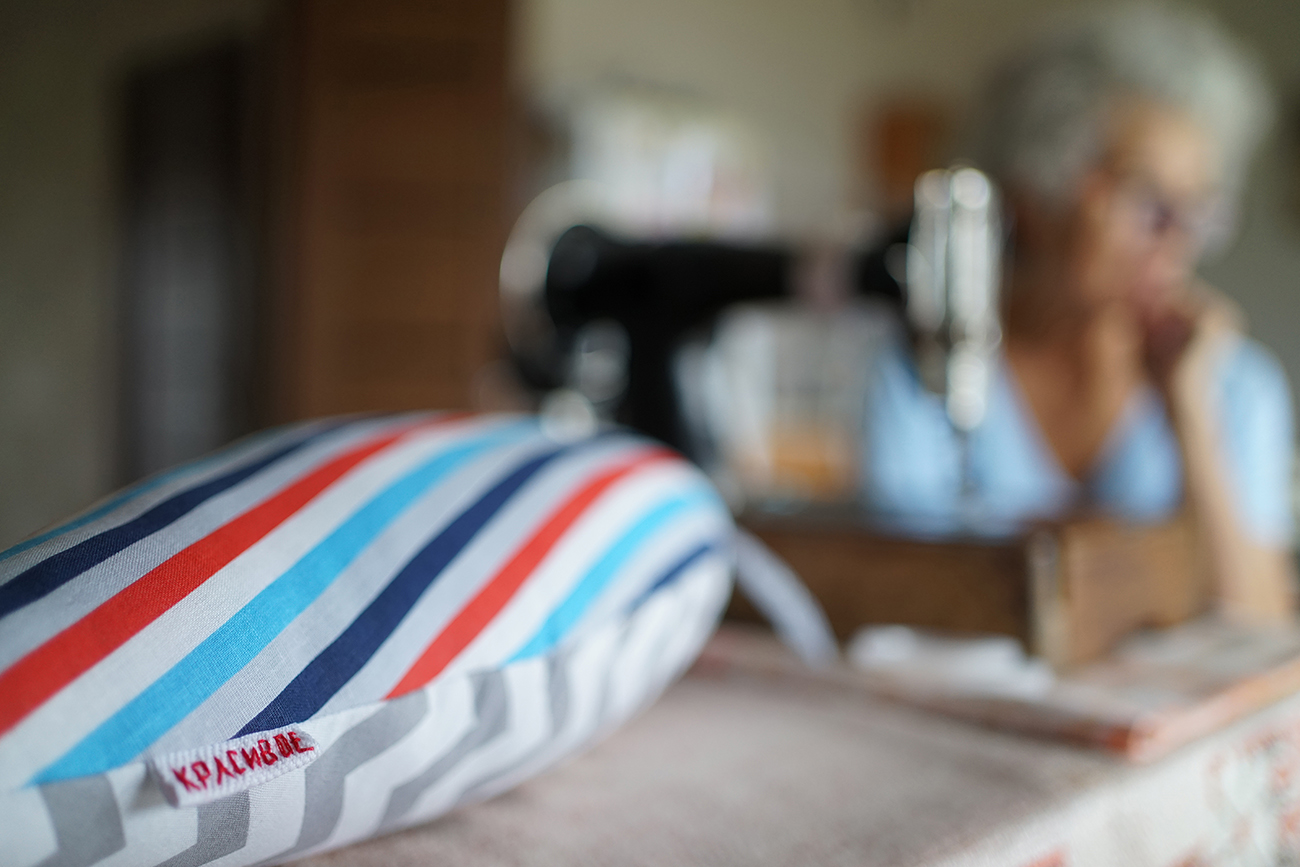 «Мама, вставай, будем шить!» С такими словами навестить Евгению Михайловну приехала младшая дочка, Юля. На семейном консилиуме решили, что маму нужно срочно чем-то занять и отвлечь от тягостных мыслей. Идея крутилась вокруг оригинальных диванных подушек, которые можно было бы нашить на подарки друзьям и родственникам в преддверии зимних праздников. Креатив старшие сестры доверили Юле. Она художница и дизайнер инклюзивных мастерских «Простые вещи». Придумывать разные необычные штуковины для рукоделия ей приходилось неоднократно. Когда в очередной раз на глаза ей попался мем: «Вы рыбов продоете? Красивое», заполонивший соцсети в прошлом году, Юля подумала: «Будем шить рыбов». Набросала несколько эскизов, собрала ткани и поехала из Питера к маме.