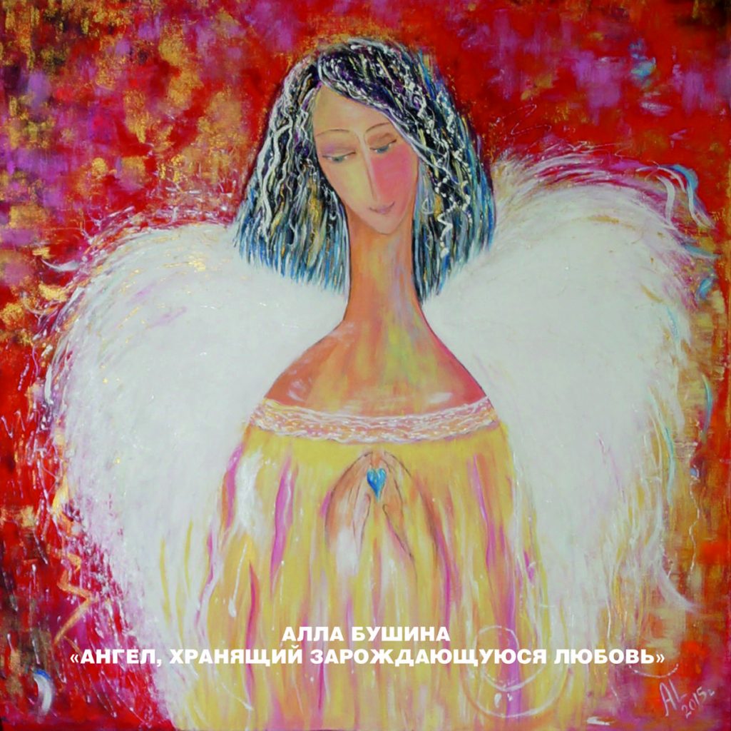 «Одна из моих любимых работ — картина Аллы Бушиной “Ангел, хранящий зарождающуюся любовь”, — признается организатор Олег. — Ангел в образе девушки на красном фоне держит в руках голубой камень в виде сердечка. Я увидел открытку с этой картиной в органном зале (он же католический костел). Узнал, что ее нарисовала прихожанка Алла Бушина. Разыскал ее и предложил повторить эту картину для проекта. Она о любви с первого взгляда. Когда Алла принесла работу, я заметил у нее на пальце перстень с таким же голубым камнем. И женщина рассказала, что его ей подарил будущий муж Бруно, с которым она познакомилась в Италии. Они гуляли, он зашел в магазин, купил его и сделал ей предложение. А она тут же открыла телефон и показала фото картины, написанной полгода назад, которую он никогда не видел».