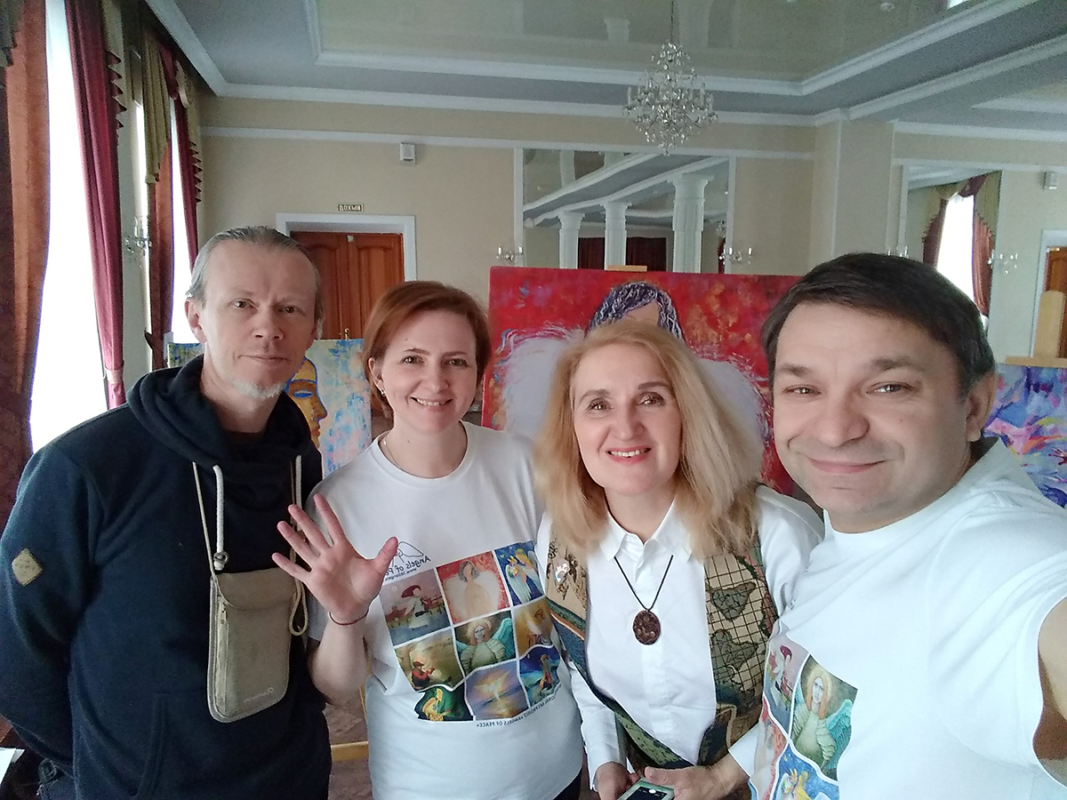 Друзья и единомышленники — это красноярцы Олег Ровда и Наталья Яценко. До встречи с Юлией у них был небольшой бизнес — агентство «Горячая пресса», к изобразительному искусству они не имели отношения. Сегодня, продав бизнес, они 24 часа в сутки занимаются «Ангелами мира».