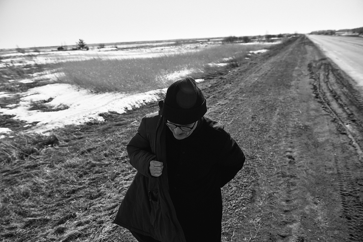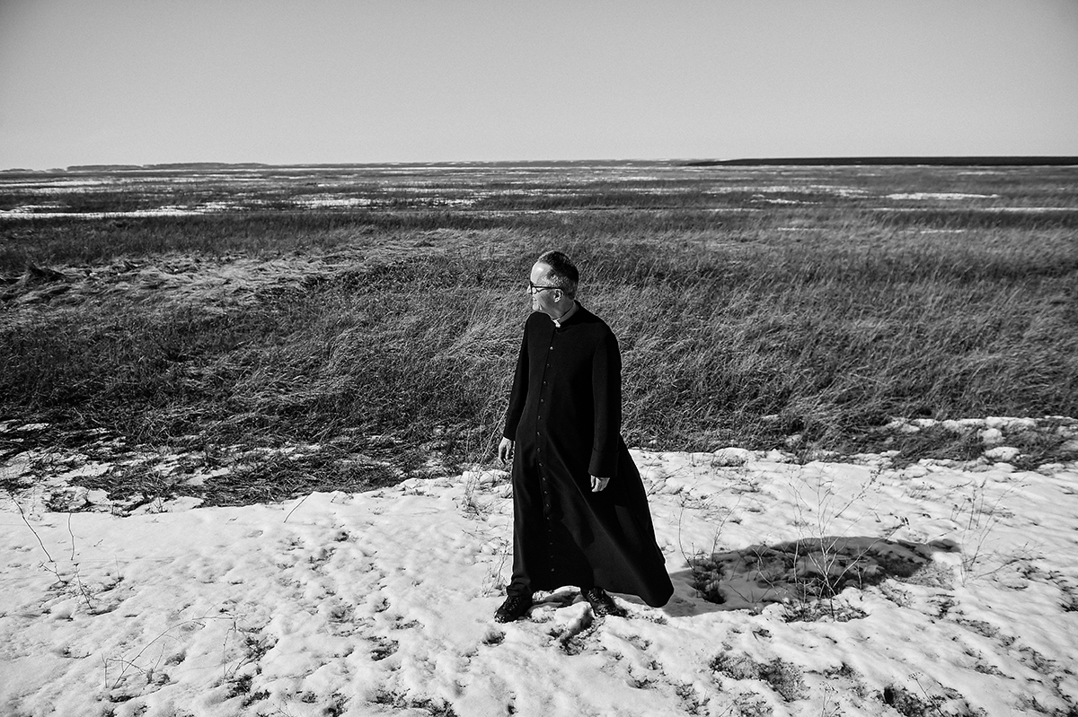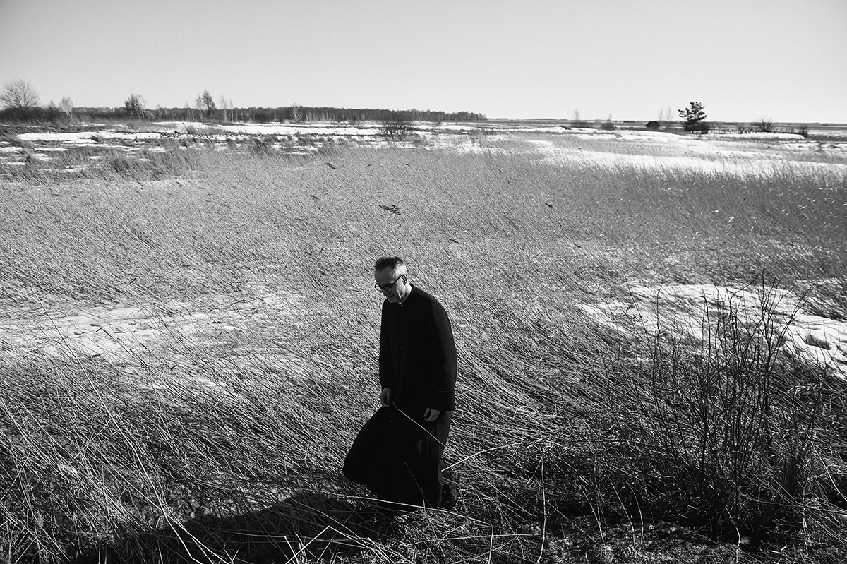 Мимо нас проносятся безжизненные серые поля, с которых недавно сошел снег. Картина удручающая, но, кажется, немецкому священнику она, наоборот, по душе.