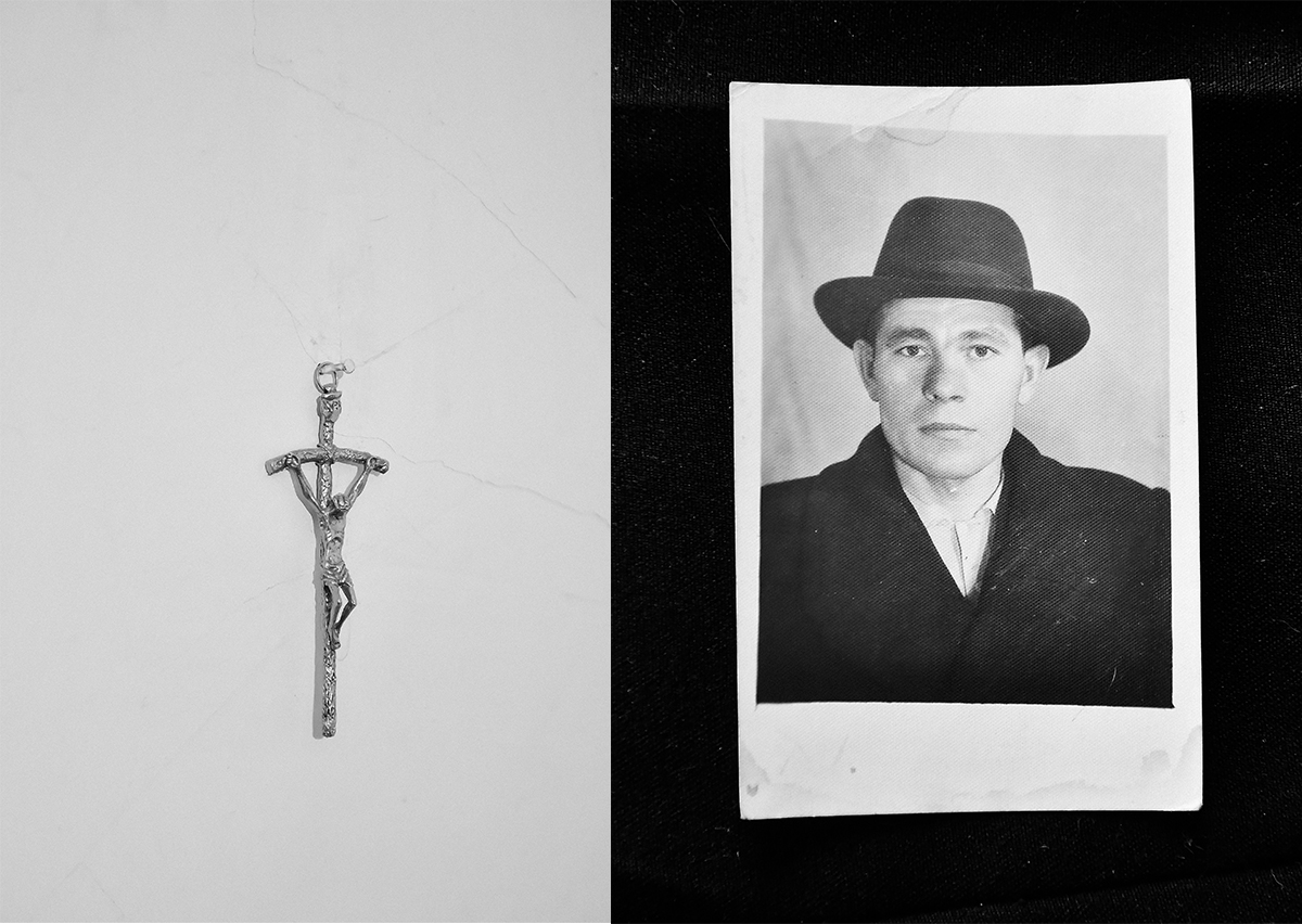 При входе в зал висит фотография папы римского, сделанная в Германии. В 2000-х Роберт Петрович ездил туда, чтобы увидеть папу: поцеловал ему руку, а тот благословил его. По стенам висят распятия, на диване — несколько комплектов одежды. Старейшина выбирал наряд получше, чтобы встретить нас «при параде».