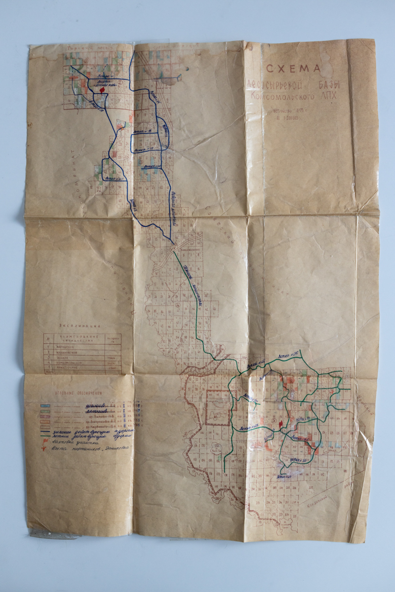 Ко встрече со мной Анатолий Васильевич подготовился основательно. Достал из папки аккуратно сложенные схемы лесосырьевой базы и продемонстрировал, что представлял собой Комсомольский леспромхоз, как грамотно был устроен процесс. «Вахтовые поселки были построены капитально: домики с комнатами для трех — пяти человек, своя котельная, баня, столовая и медпункт, — показал Анатолий Васильевич. — Без согласия врачей к работе не допускали. Все было обустроено как положено. В недоступных зонах были организованы вертолетные площадки, куда доставляли рабочих… Тогда лесовозы такие дороги строили — даже в городе сейчас таких нет. Гладкие, как стол. Да и люди другими были: старались помочь друг другу в трудной ситуации».
