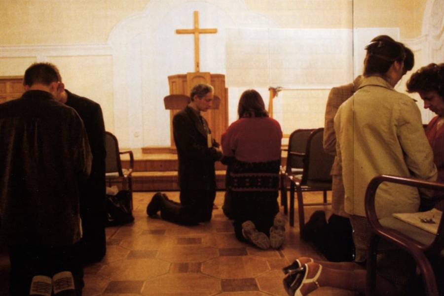 В конце адвентистского молитвенного собрания верующие разбиваются на группы