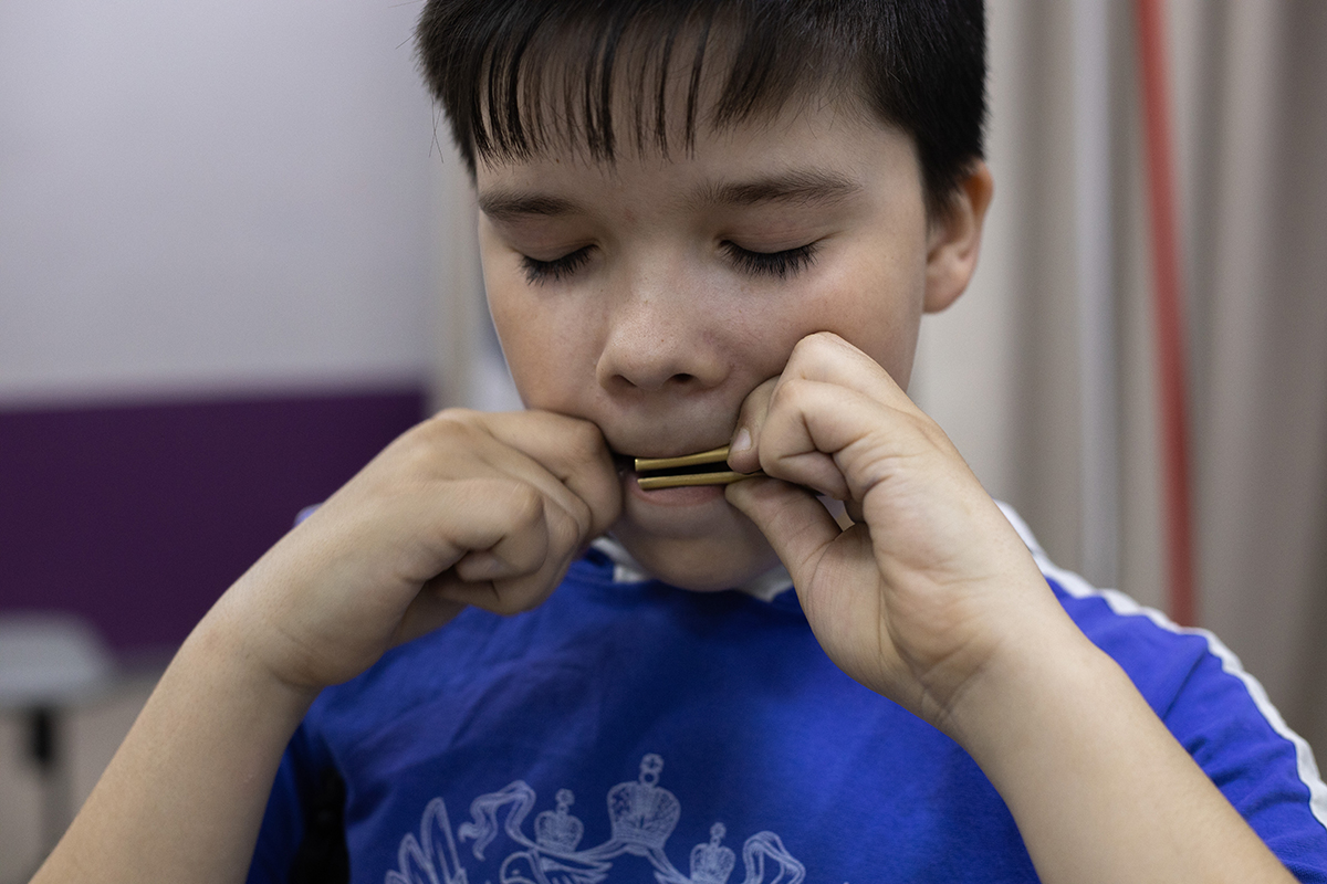 Поможет игра на хомусе и детям с расщелиной верхней губы и нёба, так как вибрация варгана активизирует мускулатуру, соединительную ткань. Вообще, если ребенку показать, как правильно дышать и держать инструмент, а потом он дома сядет, найдет удобную позу и издаст звук — все, процесс пошел! И вот он уже сам создатель своей музыки.