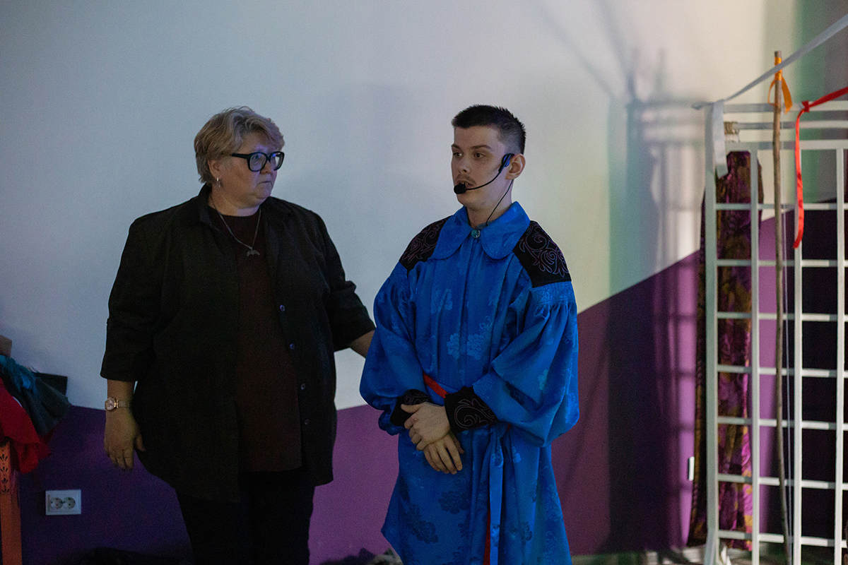 «Люди к нам приходят неслучайные, — рассказывает методист и режиссер Семейного театра Елена Клепинина. — Вот пришел ребенок, ему 20 лет. Да, это “не по уставу”, но мы берем. И я не делю, те дети или другие дети. У нас есть семьи с нейротипичными детьми и с нейроотличными. Если ребенок хочет заниматься, пусть приходит. Я вижу, как они меняются. Вначале были моменты. Вот он открывает дверь, заходит в учреждение, ему улыбнулись, но что-то пошло не так (свет, звук) — он может развернуться и уйти. И маме потом очень сложно обратно его привести. Сначала нужно научиться зайти в учреждение, где другие люди. С одним ребенком мы ходили и просто выключали свет, все розетки, у него был на этом акцент. Мы ходили и делали это молча. Или, бывает, ребенок выходит в туалет и его долго нет — а он открыл кран и завис над текущей водой. Они приспосабливались, и мы приспосабливались к разным моментам».
