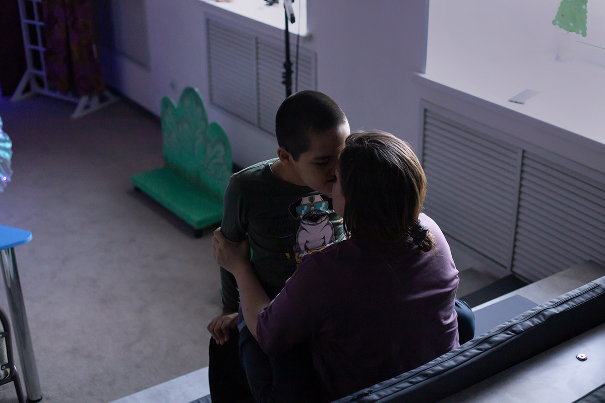 Но такие включения тоже должны быть дозированы. Он подросток, аутист. Ему тяжеловато было после спектакля со зрителями. Дима себя успокоить не может, его успокаиваю я, муж. Нужна физическая активность: выбегаться, покататься на чем-то, он любит самокат, велосипед и ролики. Еще его успокаивает, когда я его обнимаю крепко. Либо уединение: он уходит в комнату и восстанавливает силы. А когда готов, выходит к нам.