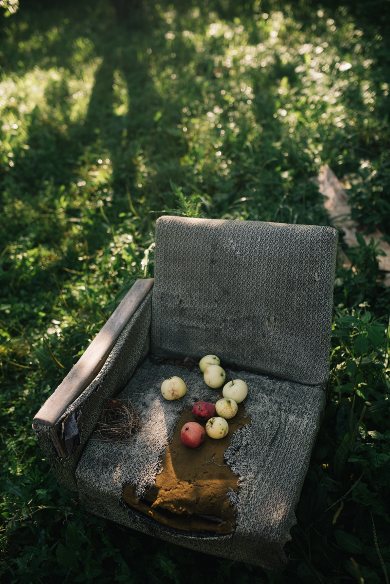 У нас облупленный желтый домик, построенный из того, что было, с рубероидной крышей, двумя комнатами, верандой, печкой, кладовкой. И каждый уголок его забирает часть меня. Вода в колодце, душ из бочки, нагретой солнцем. На чердаке вместе с дозревающими помидорами — подборка журналов «Трамвай» и «Ровесник», где я впервые читала лимерики вперемешку со статьями и о смерти Кобейна. На стенах — детские рисунки дочери, а вдоль них — хромой буфет с сервизом от тети Гали, продавленный диван, чьими только руками не ремонтируемый. Вещи, потерявшие свое утилитарное значение, но ставшие хранилищами памяти.