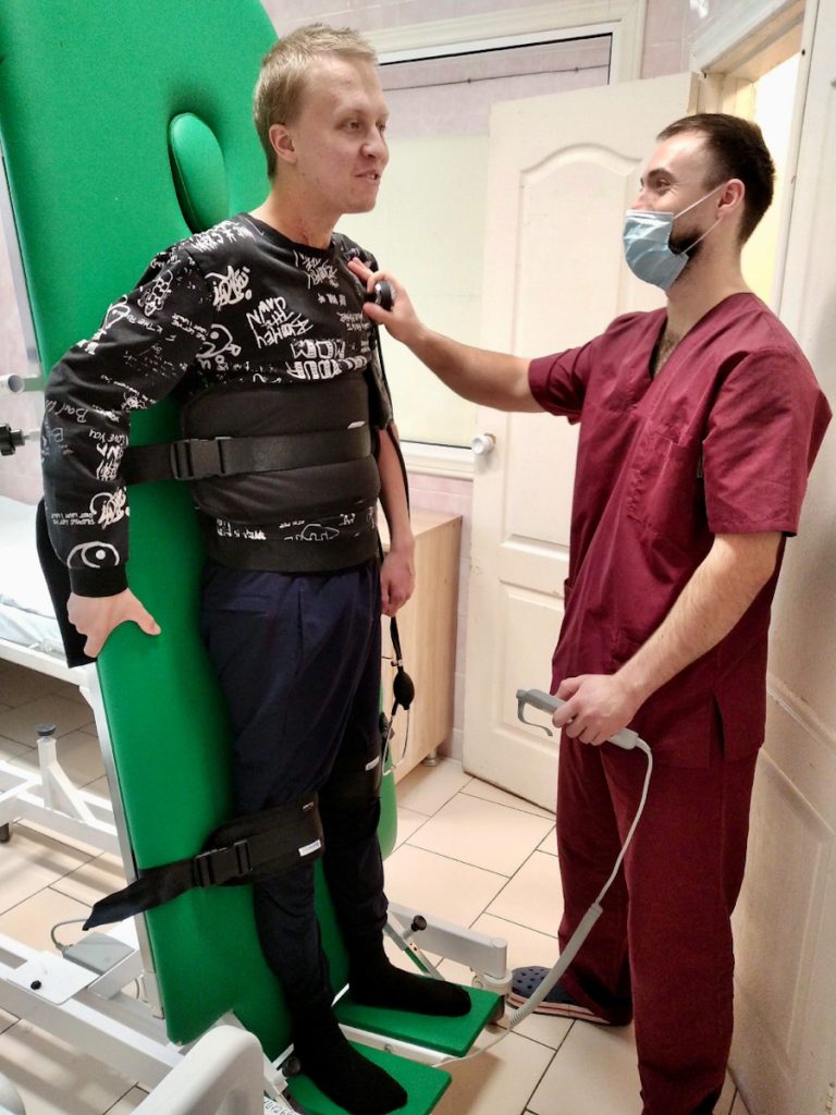 «Мы делали упражнения, где я вставал в ходунки и за счет мышц спины буквально приподнимал ноги — тренер помогал им двигаться, — говорит Максим. — Это было невероятное ощущение — снова почувствовать, что могу хоть немного управлять своим телом».