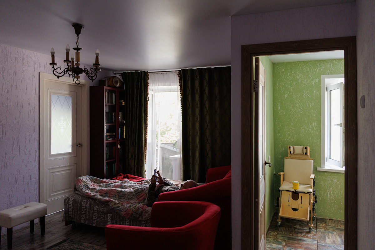 Купаться в ванне Сергей тоже не может, его протирают салфетками. Переворачиваться помогают близкие, а есть приходится лежа на боку.