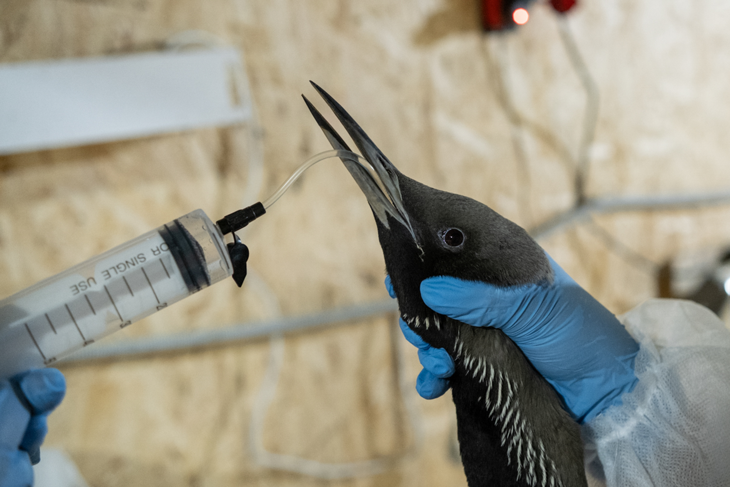 Вторая птица с именем — злющая краснозобая гагара Кракен — так звали морское чудище из ирландских сказок. Кракен тоже жертва разлива нефти. При этом благодарности за свое спасение гагара не испытывала: