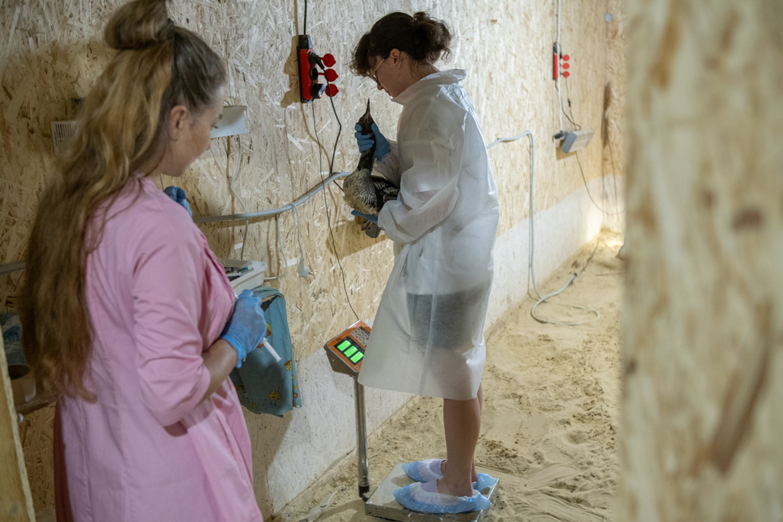 — Не собирались! — смеется Настя. — Просто у мужа астма, убирать мазут он не мог. Но даже если не убирать, нефтяные испарения тут были везде. Мы, когда объясняли людям, где находится мойка, говорили: «Найдете нас по запаху!» Поэтому Артем стал автоволонтером. А я с птицами: принимала, мыла, отпаивала, вводила через зонд лекарства… Первые дни спать было некогда, я даже стала путаться в ногах — упала с лестницы. А уйти было нельзя. Люди постоянно менялись, их надо было учить. Только научил — у них отпуск закончился, уехали. Следующих учишь, других, третьих…