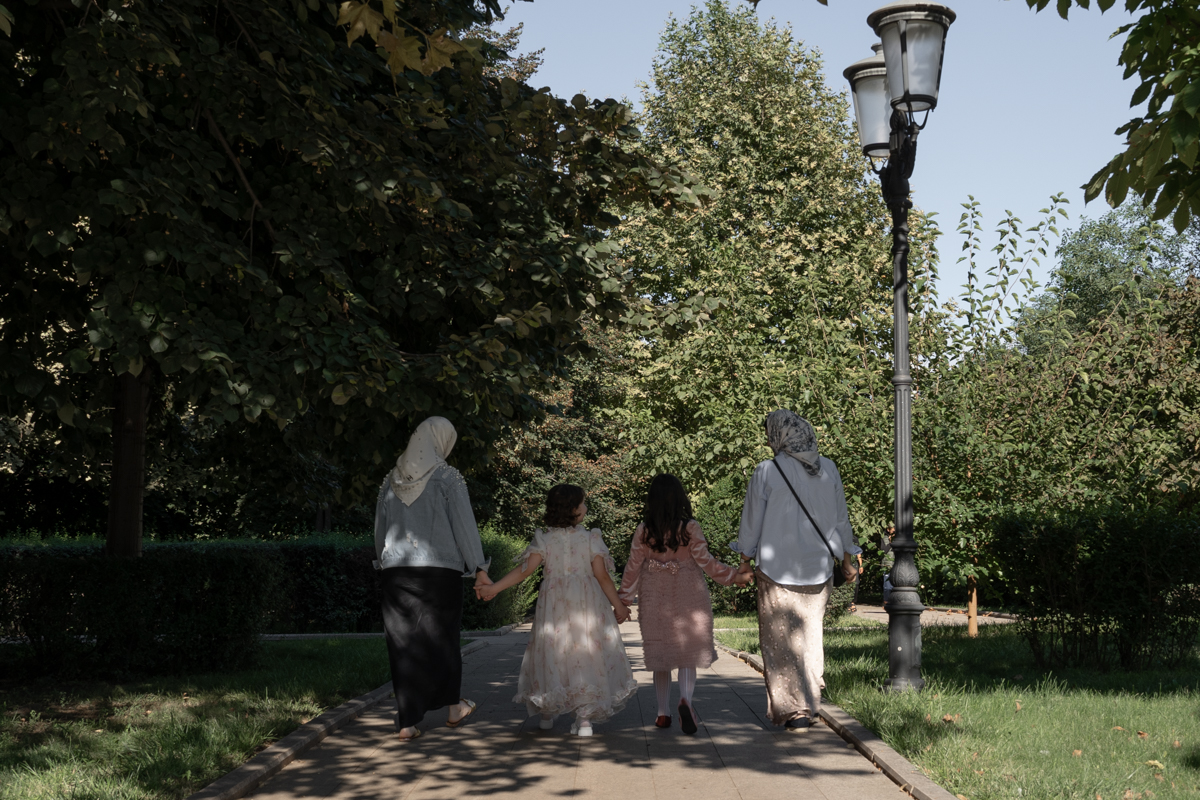 Девочки родились с разницей в месяц и три дня. Обе — младшие сестры в своих семьях. Обе — чеченки. Раньше семьи жили в разных городах, сейчас между их квартирами в Грозном расстояние 30 метров.