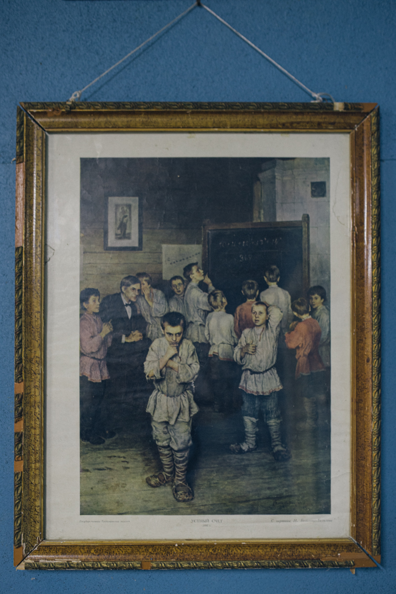 Рачинский с учениками. Репродукция картины «Устный счет. В народной школе С. А. Рачинского» в Татевском краеведческом музее