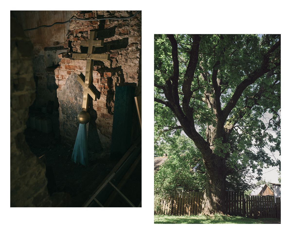 Слева: в татевской церкви Троицы Живоначальной. Много лет здесь ремонтировали совхозные тракторы. Часть храма еще ждет реставрации. Справа: в Татеве возле усадьбы