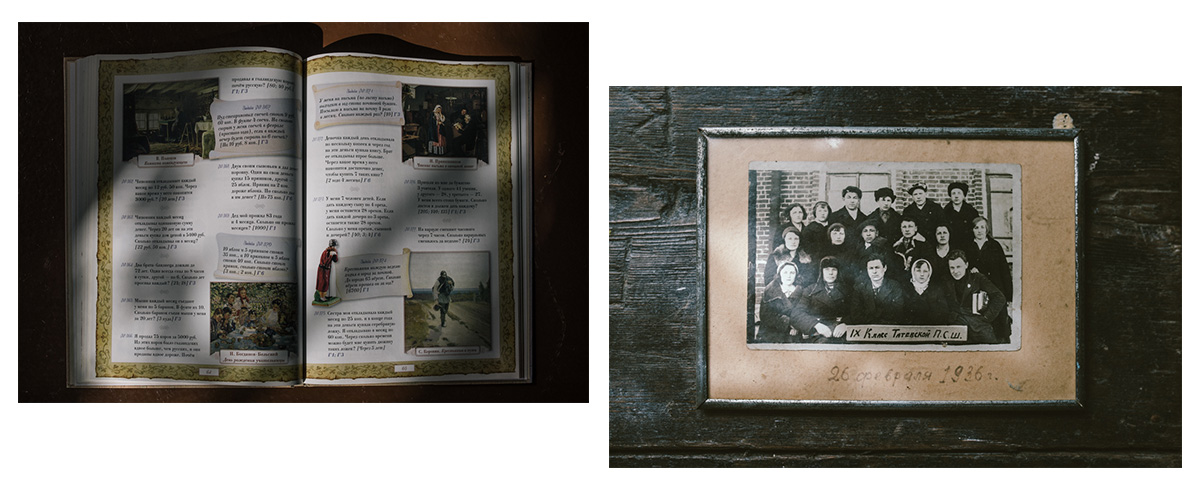 Слева: учебник Рачинского «1001 задача для умственного счета». Прообразы современной ментальной математики. Справа: ученики Татевской школы, 1936 год. Фото из краеведческого музея