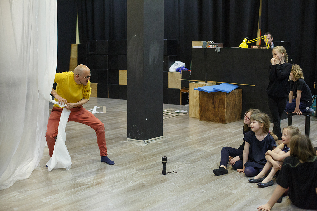Летом у Романа сплошняком театральные лаборатории и детские лагеря — сначала в петербургском «Нормальном месте», потом во Владивостоке (часть проекта «Контур культуры» благотворительного фонда «Новый учитель»), потом в Ленобласти от педагогического объединения «Все дела». У каждого лагеря свое «лицо»: тот, что в «Нормальном месте», получился самым инклюзивным, в Ленобласти — семейным, с ребятами, которые участвуют в таких поездках из года в год. А во Владивостоке все началось с того, что дети могли выбирать из множества творческих лабораторий, и, когда они заходили к Роману, он говорил: «Будет трудно, потому что хочется поставить спектакль в финале. Мне ужасно интересно, если вам тоже — класс. Если вы готовы напрячься, я буду рад. Но если вы не выберете мою мастерскую, я буду рад, пожалуй, еще сильнее — значит, вы нашли что-то, что вам подходит больше». Это занимало минуту, потом он предлагал: «А теперь спросите все, что вам важно знать про меня, про процесс, про то, что, как и зачем мы будем делать». Один юноша серьезно спросил: «Почему вы лысый?»