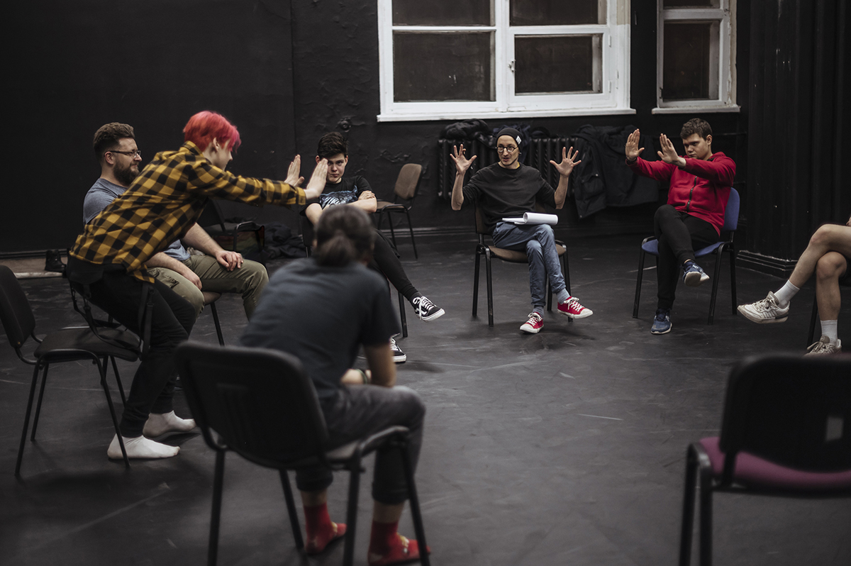 «Если у этой “машины” появляются колесики доверия, то она очень быстро едет. А если нырнуть сразу — “Ребята, спектакль, давайте, соберитесь!” — все время что-то дребезжит, отваливается, ломается. Как будто секрет успешной работы, которая приведет к общему результату, в том, чтобы у людей было время друг друга рассмотреть и понять, что мы разные, но каждому есть место».