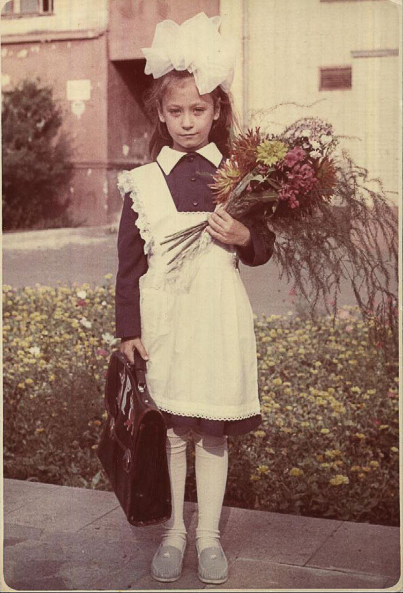 Я мечтала о школе. Я ею просто бредила. Мне казалось, это лучшее место на земле. Летом с замиранием сердца я открывала шкаф, где висело новенькое платье и фартуки из магазина «Машенька» — именно там продавалась лучшая форма в Москве. У меня было платье с мелкой плиссировкой и воротником-стойкой.