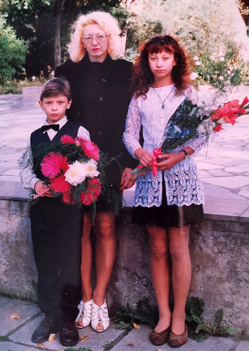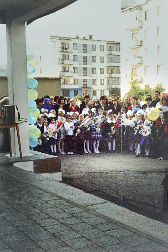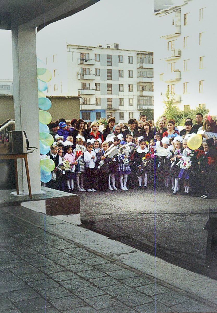 Саму линейку помню смутно: волнение, утренний холод и скучные речи. Хорошо, что сохранились фотографии. Я, мама, бабушка и брат — у подъезда. Двумя годами позже у этого самого подъезда застрелят самарского криминального авторитета, который жил в нашем доме: обычное дело для 1990-х. Мы пили чай вечером на кухне, когда услышали выстрелы. Папа велел выключить свет и пригнуться.