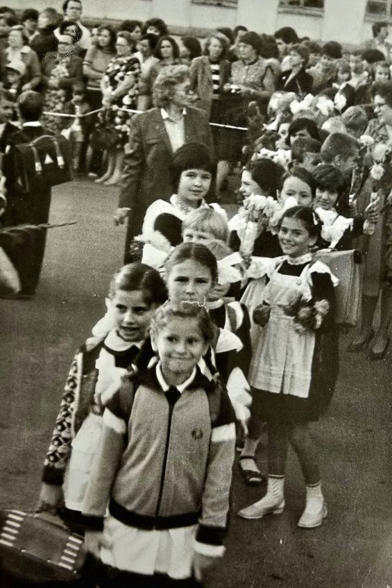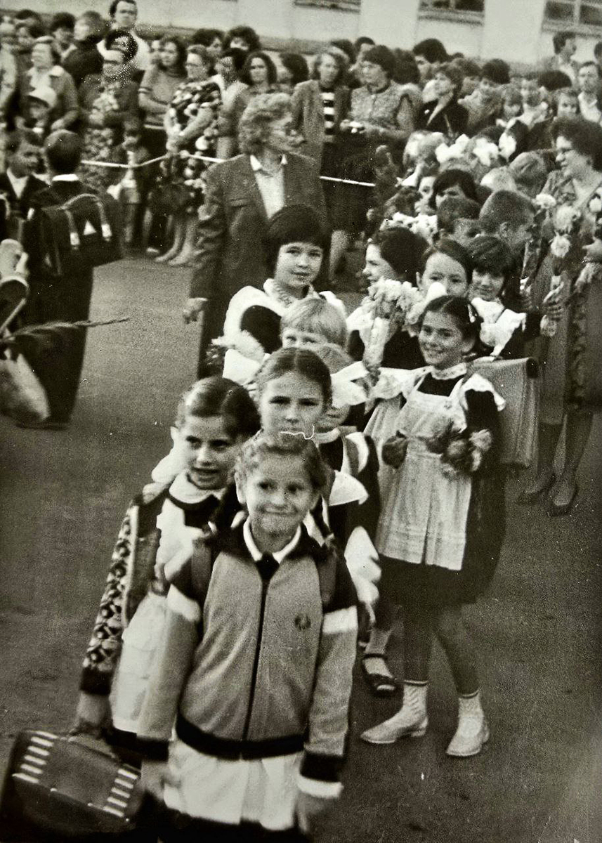 Саму линейку я не помню. Помню, как торопилась занять место за первой партой — поближе к 23-летней учительнице. Наивная дурочка. Впоследствии наша первая учительница бросала в нас тряпкой, обзывала, кому-то доставалось по лбу указкой, а самым везучим даже заклеивали пластырем рот.