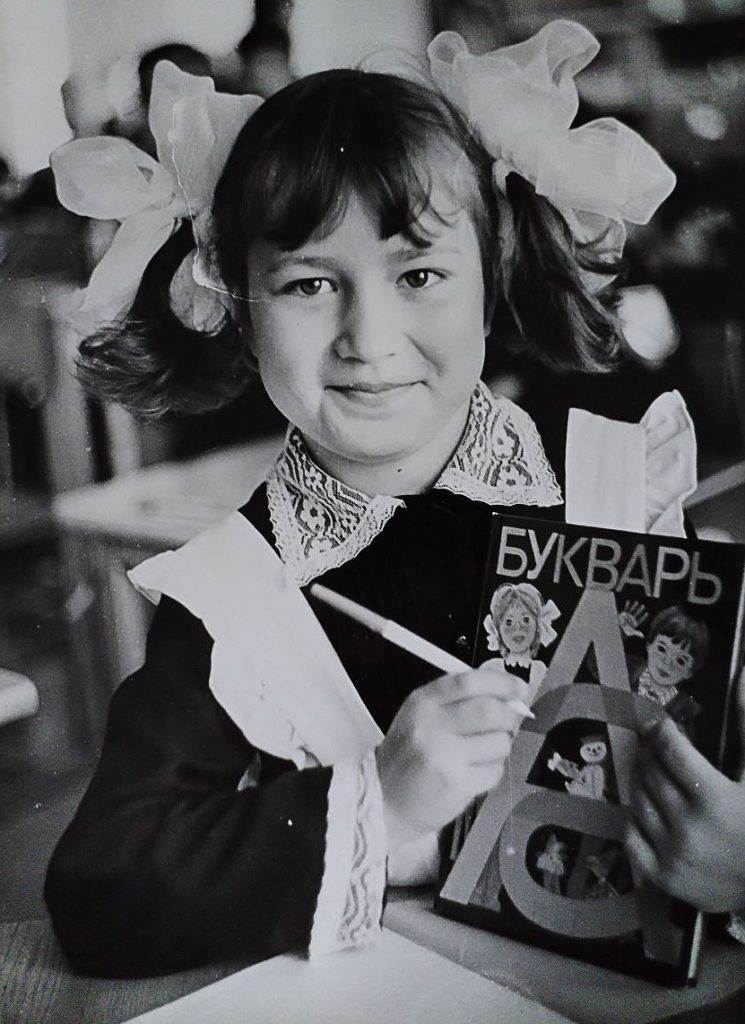 1 сентября 1999 года было трепетным и праздничным. Во-первых, мне купили школьный рюкзак с Барби: я демонстративно несла его и фотографировалась с ним везде. Во-вторых, я выглядела стильно и уверенно, потому что была в костюмчике, сшитом мамой (а мама потрясающе шьет). В-третьих, в мой класс попали несколько знакомых мне ребят из детсадовской группы, в том числе моя первая любовь по имени Олег — поэтому все, что происходило вокруг (первая линейка, огромный букет с бабушкиной грядки, первый урок), было словно в тумане.