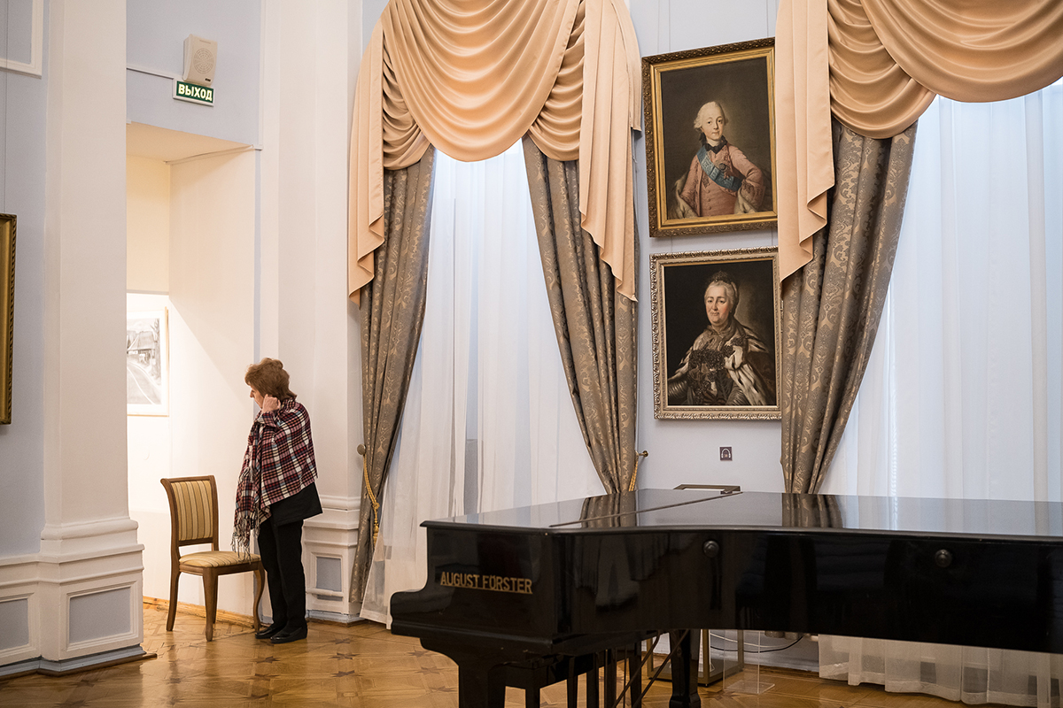 «За всем нужно следить: иногда не один зал, а до пяти на одном человеке, — делится смотритель Татьяна из зала живописи XIX века. — Мы и столы, и стулья носим, и мероприятия проводим. Стрессовая работа. Когда я на “Петрозаводскмаше” в конструкторском бюро работала, и то меньше переживала. Всем хочется все потрогать, пощупать — надо контролировать. Но иной раз боишься замечание сделать. Бывали случаи, на нас даже жалобы писали, что смотритель позволил себе замечание сделать. Теперь молодые меньше учителей уважают, старших…»