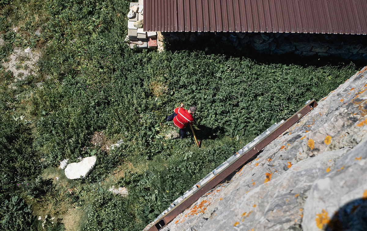 «Получается, мы вроде как смотрители этого места, — говорит Алан, пока мы идем с ним вверх по склону посреди развалин древнего селения. — Есть еще Теймураз — он из местных, помогает нам, присматривает тут. А из фамилий, что когда-то жили здесь, пока только мы что-то восстанавливаем».