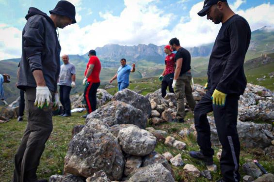Значительно упростило работу то, что начинать пришлось не с нуля. От башни сохранилась одна стена и гора камней, которая подпирала ее. «Среди этих камней не было посторонних, — объясняет Заурбек. — Мы все их аккуратно разложили, определили угловые камни (их очень легко узнать по четким граням) и, грубо говоря, начали как конструктор собирать башню заново».