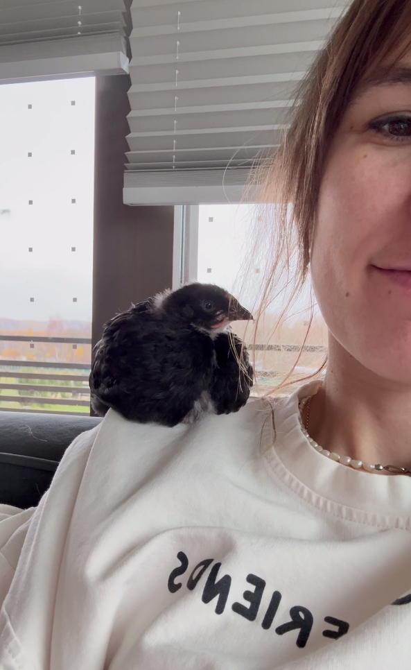 В августе умерла Ксюшина любимица — курица по имени Цапля. Не оправилась от травмы, которую сама себе нанесла. Для хозяйки это была тяжелая потеря. Заводить новую курицу она категорически не планировала. Но через пару месяцев получила сообщение от волонтеров: принесли цыпленка — нужно спасать. Какой-то мужчина купил цыпленка как корм для своей совы. Но не смог отдать пищащий живой комочек на растерзание хищнику. Так неожиданно у Ксюши появился новый питомец — Пингви. Два месяца наблюдатели вместе с Ксенией гадали, кем окажется цыпленок — курочкой или петушком (в младенчестве гендерная принадлежность у кур неопределима). К декабрю стало очевидно, что наглый подросток в черных перьях, который тырит лакомства у собак, однозначно курица.