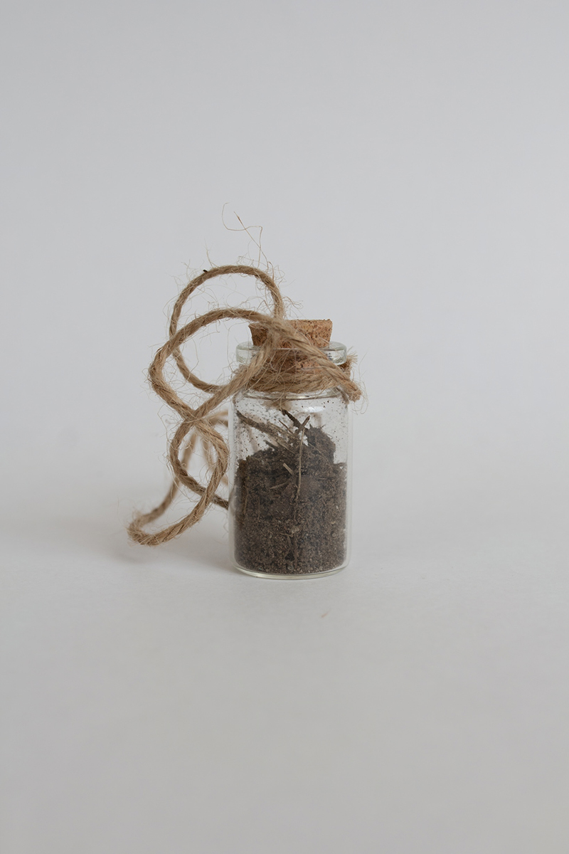 В эту небольшую колбу я собрала немного земли с кладбища, где захоронена моя прабабушка. Это позволяет помнить о ней и о жестокости, на которую способны люди