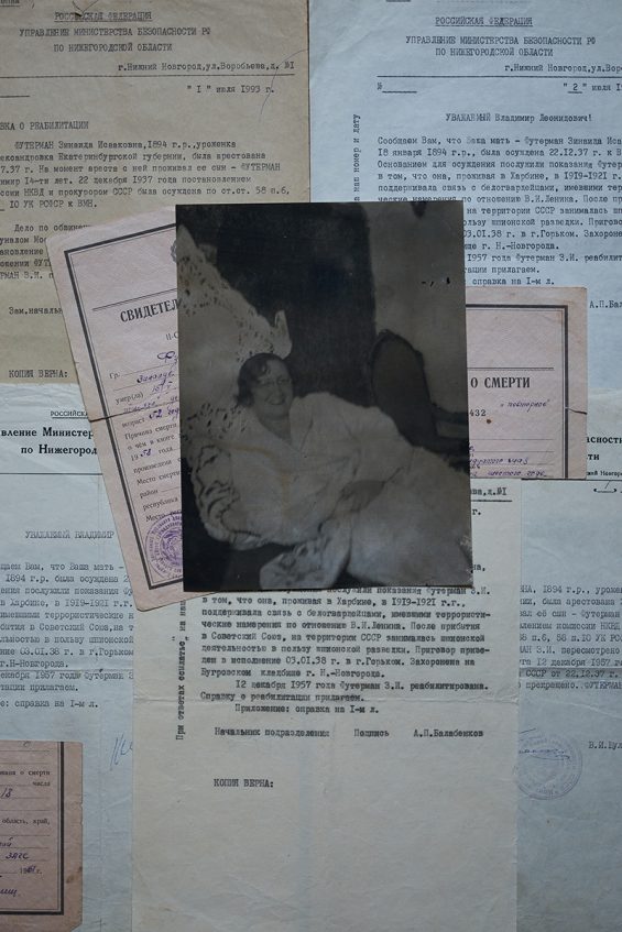 В моей семье, как и во многих семьях в России, предпочитали не говорить о пережитых репрессиях периода СССР. О судьбе своей прабабушки Зинаиды Исааковны Футерман я узнала только в 24 года. И уже два года я работаю над проектом «1937», основанным на архивных фотографиях и документах, дополняя их современными снимками и коллажами. Так я восстанавливаю историю прабабушки, пытаюсь найти ответы на вопросы о моей семье и о моей стране