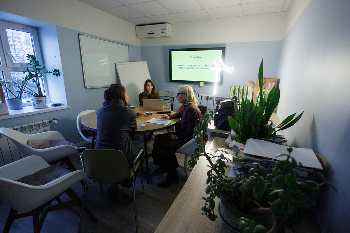 Даша едва успевает снять куртку и раздеть Марусю, как начинается первая встреча — в «Ночлежку» приехала министр труда и социального развития Омской области Ирина Варнавская.
