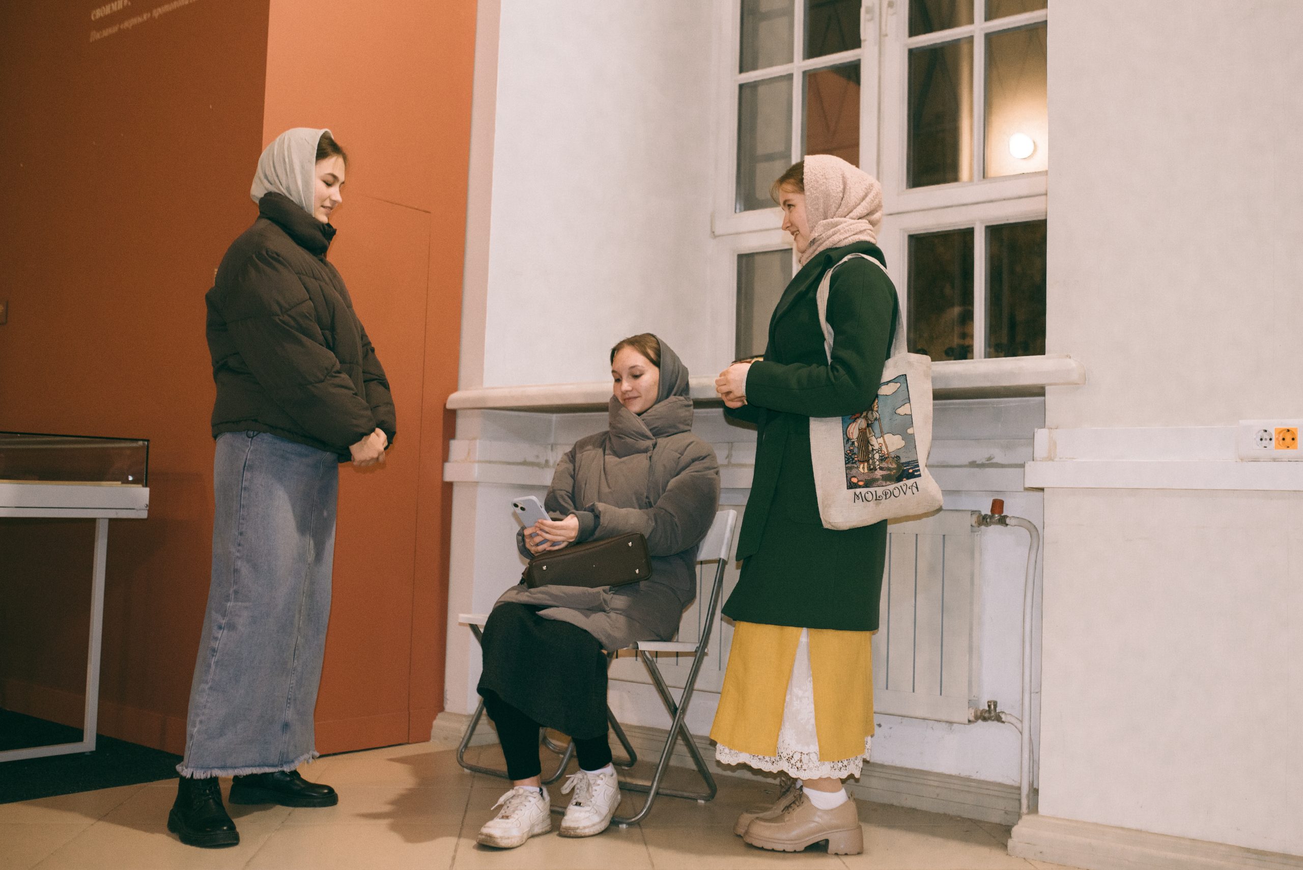 Пьем чай с печеньем и фруктами. Девушки по очереди рассказывают о себе. Одна из участниц, Елизавета, живет в Ростове-на-Дону и приезжает в Москву для репетиций. «У меня на самом деле с детства была мечта оказаться в каком-то таком хоре, потому что я росла в старообрядческой семье, — говорит Елизавета. — Три моих старших брата тоже поют в хоре. Я пыталась у нас в приходе организовать что-то подобное, но там все маленькие девочки, которые еще не готовы к такому. И тут мне подвернулся шанс, когда Варя приехала к нам в приход позаниматься с нами. Потом летом мне Варя предложила приехать позаниматься лично, позаписывать духовные стихи. Я приезжаю — и оказывается, что она организовывает уже свой хор».