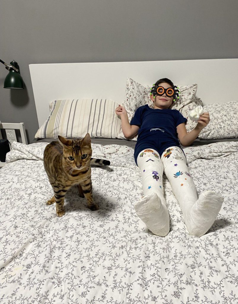 «Следующие два месяца сын был из-за загипсованных до таза ног полностью обездвижен и просто лежал. Мало того что он сам тяжелый, а еще два тяжеленных гипса. Но мы все это прошли», — говорит она. Когда сняли гипс, ребенок «абсолютно» перестал ходить и его нужно было заново ставить на ноги.