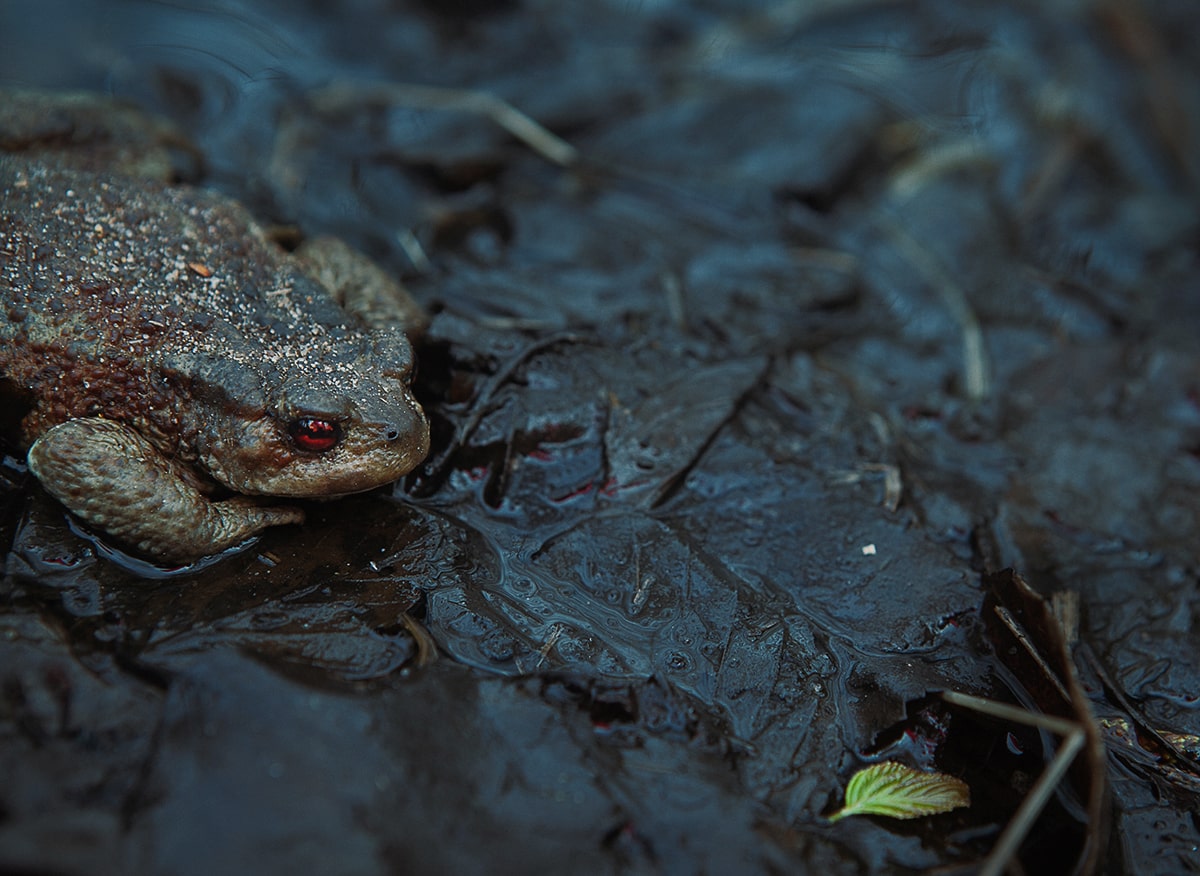 О чем текст: каждую весну в заказнике «Сестрорецкое болото» под Петербургом лягушки и жабы в соответствии с законами природы выползают на берег ради размножения. Беда в том, что путь им преграждает асфальтированная автомобильная дорога с оживленным движением. Животные массово гибнут под колесами, не достигая цели и не оставляя потомства. Перекрывать дорогу нельзя — она общего пользования. Единственный выход — в период миграции, то есть в течение всего мая, переносить жаб и лягушек, желающих размножаться, через дорогу на руках. Государство не может справиться с такой задачей, и дирекция заказника надеется только на волонтеров. Наш шеф-редактор Леша Яблоков и фоторедактор Даша Асланян поучаствовали в спасении амфибий.