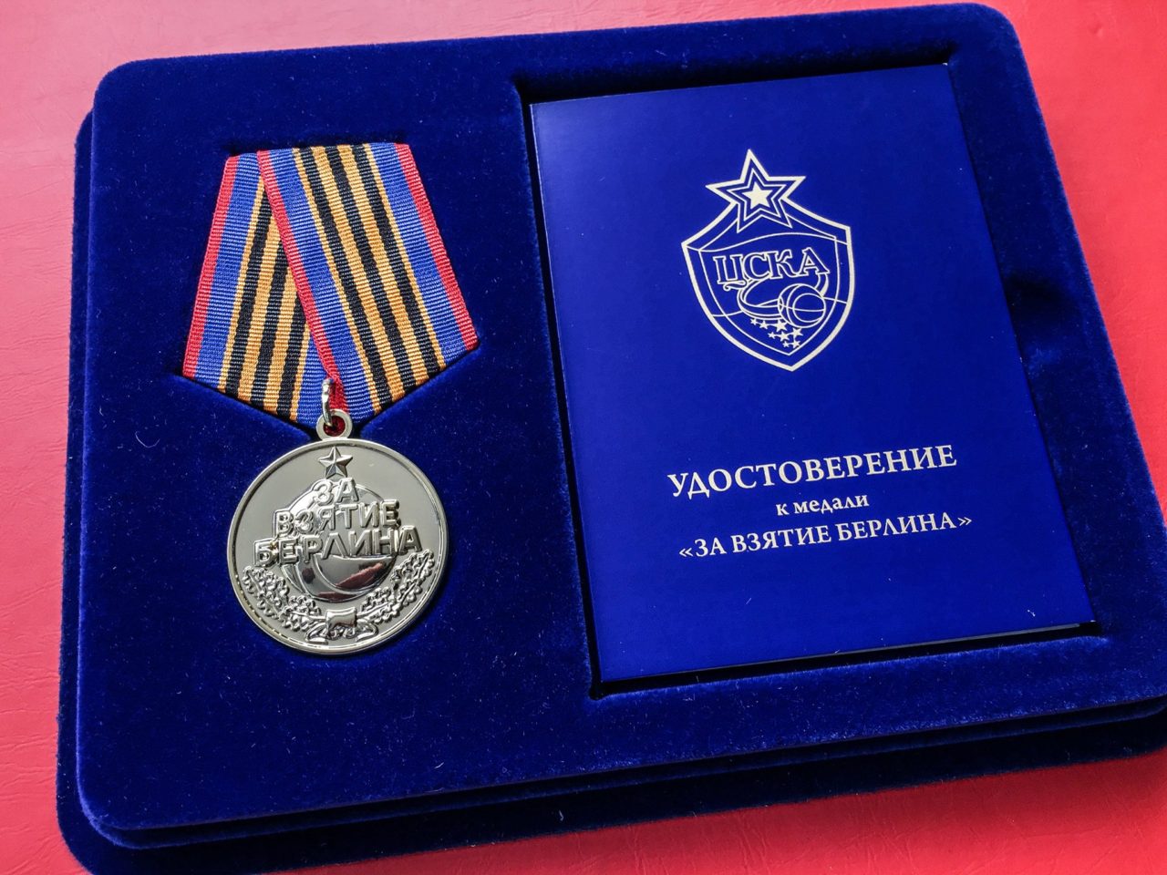 Медаль для болельщиков — не точная копия советской медали «За взятие Берлина». На самой медали изображен баскетбольный мяч, а лента медали выполнена в «армейских» цветах. На центральной части ленты, также как на оригинальной медали, георгиевская лента.